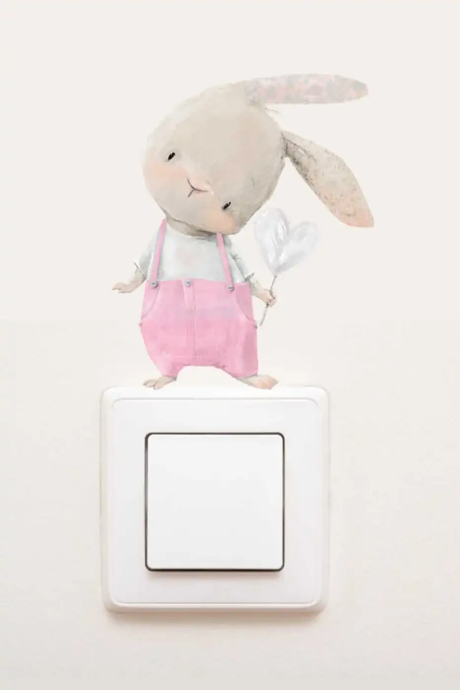 Add a different atmosphere to your child's room, make outlets more enjoyable, add the Pink Jumpsuit Bunny Decorative Outlet Sticker to your cart now!