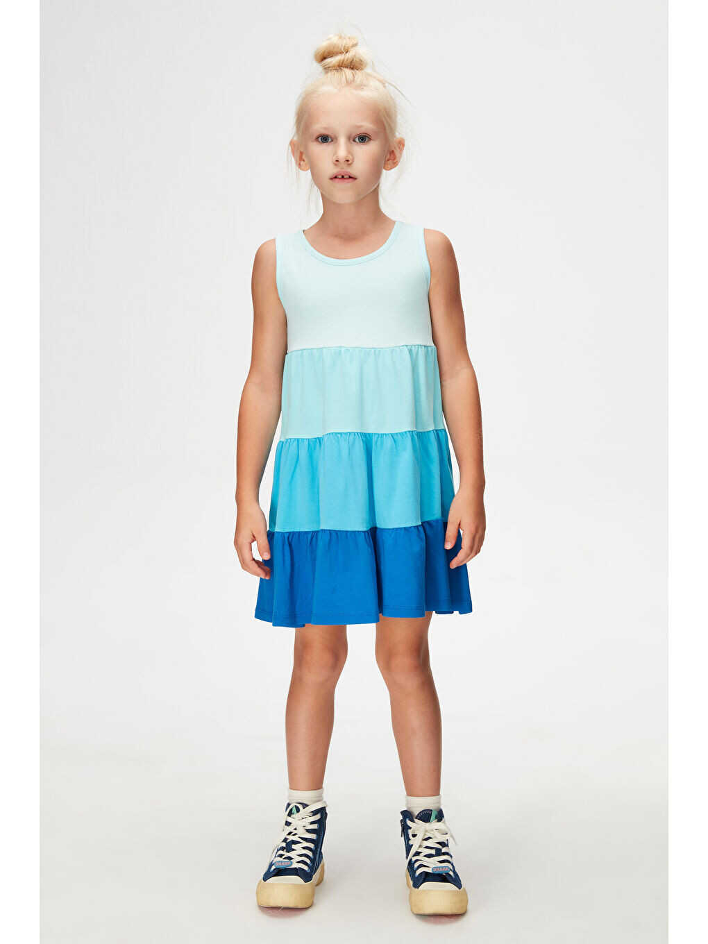 Soft Turquoise-Lilac Girls' Colorful Tiered Ruffled Sleeveless Dress brings the energy and joy of summer to the wardrobes of little ones. This stylish and comfortable dress stands out with its special design, while allowing girls to move freely. The vibrant turquoise and lilac colors of the dress reflect the energetic spirit of children, while the tiered ruffled skirt detail adds a lively and fun look to the dress. Thanks to its sleeveless design, this dress offers a cool and comfortable use in hot weather and is an ideal option for both daily use and special occasions. This dress, which will add elegance to the elegance of little ones, will be one of the indispensable pieces of the wardrobe.Product DescriptionSoft Turquoise-Lilac Girls' Colorful Tiered Ruffled Sleeveless Dress is the perfect choice to ensure that little princesses are both comfortable and stylish on hot summer days. This unique design attracts attention with its vibrant colors and unique details, reflecting the energy and joy of children. The harmony of turquoise and lilac colors of the dress offers an eye-catching look, while the tiered ruffled skirt detail adds movement and fun to the dress. Each layer is slightly ruffled, making the skirt of the dress look like it is dancing. This detail is ideal for children who love to move and play. The sleeveless design offers coolness and comfort in hot weather, while allowing your child to move comfortably. The thin and adjustable straps ensure that the dress fits your child's body perfectly. Thus, they can move comfortably and freely throughout the day. The fabric of the dress has a high-quality and breathable texture. In this way, it does not irritate your child's skin and prevents sweating. This fabric, which is ideal for children with sensitive skin, offers comfortable use throughout the day. This dress is a perfect option not only for daily use but also for special occasions and invitations. This dress, which will complete your child's elegance at birthday parties, family gatherings or other special events, will make her feel like a princess. The colors and design of the dress can be easily combined with different accessories. For example, you can complete your child's style by combining it with stylish sandals or flats. Soft Turquoise-Lilac Girls' Colorful Tiered Ruffled Sleeveless Dress is not only stylish and comfortable, but also easy to clean and care for. Thanks to its machine washable feature, it offers practical use. This is a great advantage for busy parents. The colors and texture of the dress retain their vibrancy even after washing, so it continues to look like the first day for a long time. This dress is a must-have in your child's wardrobe. It prioritizes your child's elegance and comfort both in daily use and on special occasions. Your child will always dazzle with the Soft Turquoise-Lilac Girls' Colorful Tiered Ruffled Sleeveless Dress!Product Features* Vibrant turquoise and lilac colors* Tiered ruffled skirt detail* Sleeveless design* Breathable fabric* Comfortable and convenient useAdditional InformationMachine washable. Different size options are available. It is recommended to follow the washing instructions on the label for the product to last longer.