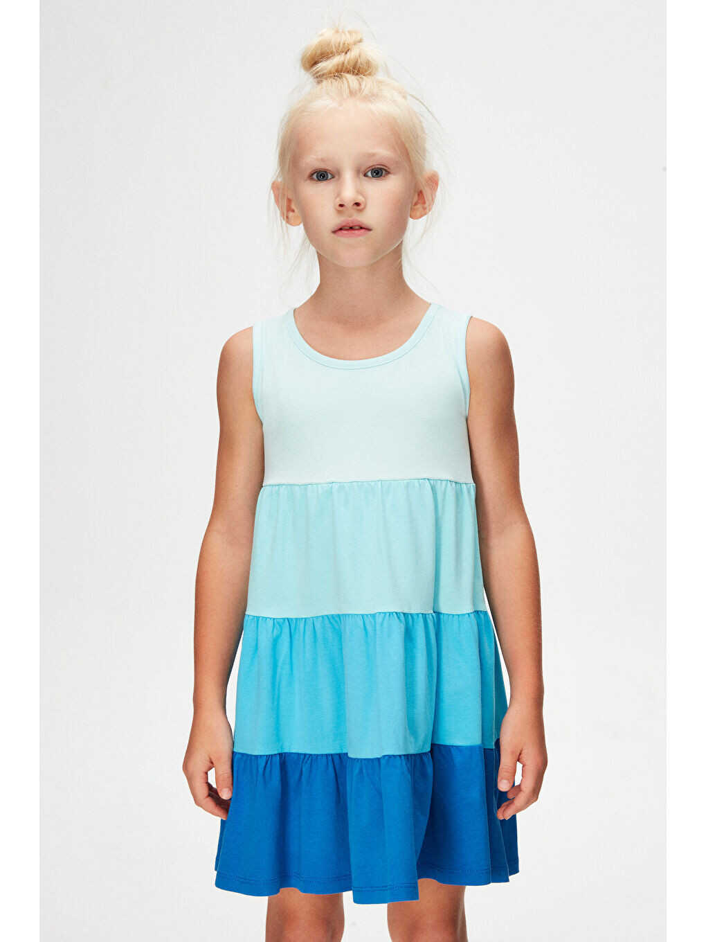 girl's dress, turquoise dress, royal blue dress, layered dress, gathered dress, strap dress, children's clothing, summer dress, colorful dress, comfortable dress