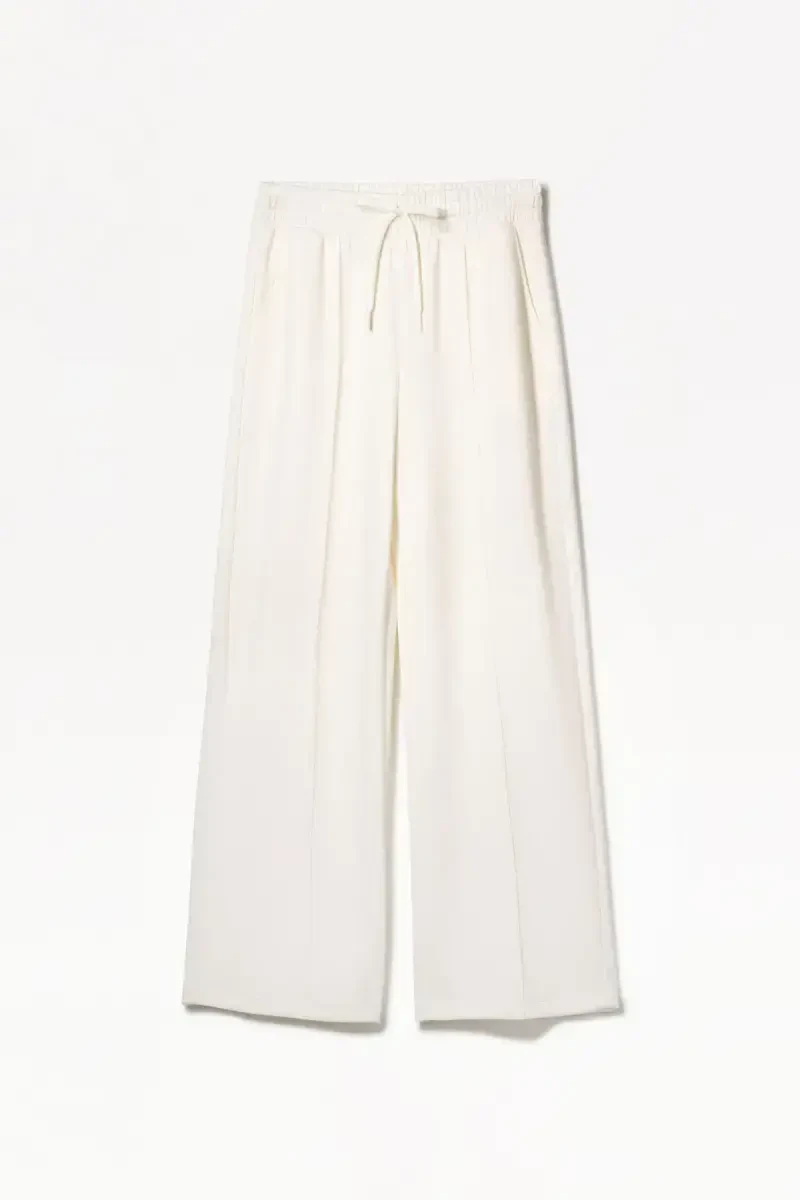 Soft-textured, wide-leg, cream-colored trousers that combine comfort and elegance. A figure-flattering, high-waisted cut that allows freedom of movement. Ideal for everyday use.Here's a new 1500+ character product description: