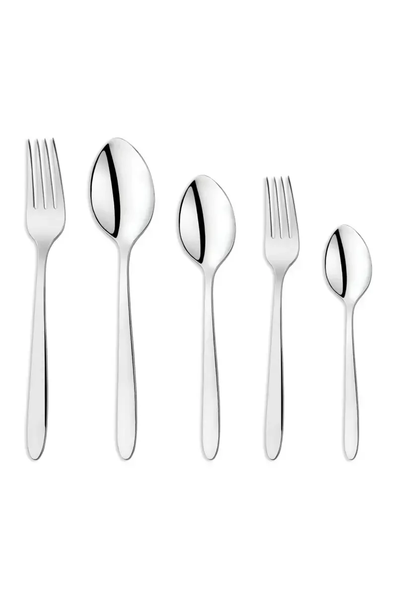 To'plamda 12 ta vilka, 12 ta qoshiq, 12 ta pichoq, 12 ta shirinlik qoshigi va 12 ta choy qoshiqi bor. Kumush rangli qoplama stolingizga zamonaviy ko'rinish beradi, sifatli zanglamaydigan po'lat material esa uzoq vaqt davomida ishlatish imkonini beradi.