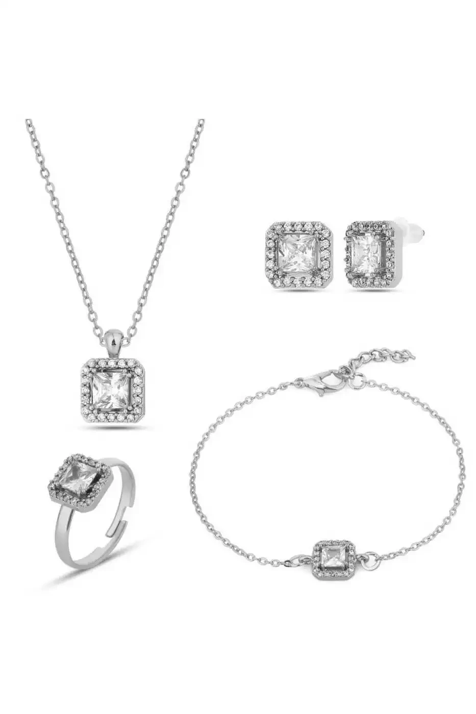 Express the voice of your heart with the most precious jewels! This magnificent set, consisting of a single stone necklace, earrings, ring and bracelet, offers an unforgettable gift option for your lover, mother or a special someone. Designed with care and craftsmanship, this set will make you unique at every moment with its elegant and stylish appearance.