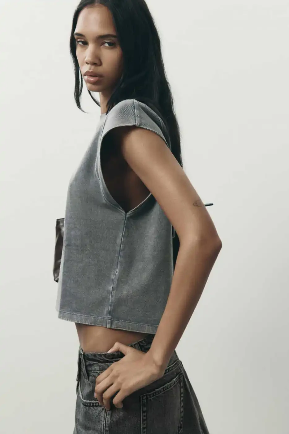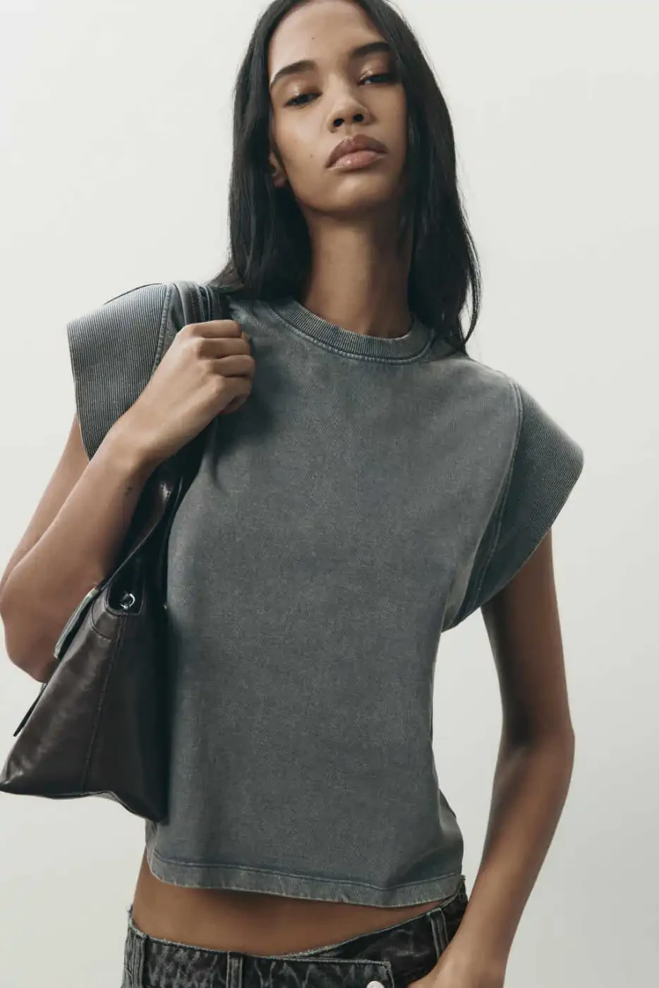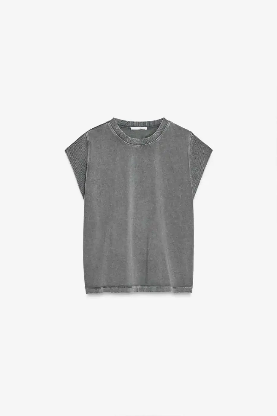 SOLUK EFEKTLI KOLSUZ T-SHIRT. %100 Paxta. Velosiped yoqasi. SOLUK effektli. Qulay kesim.