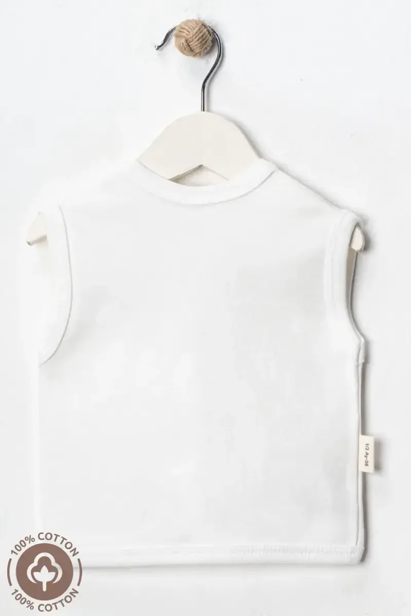 Qizcha bolalar uchun ayiqcha kashtado'zligi bilan bezatilgan organik paxtadan tikilgan 3-6-9 oylik 2 ta penye bolalar yelegi - Somon