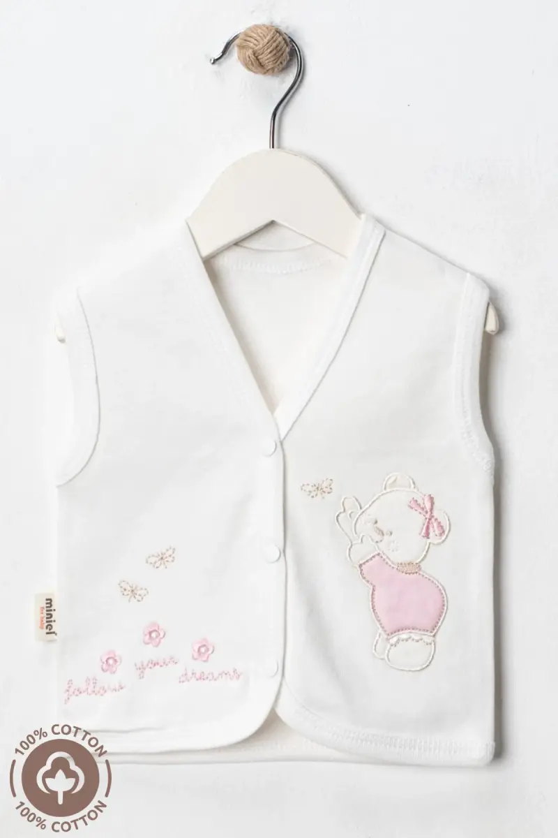 bebek yelek, organik pamuk yelek, kız bebek yelek, ayıcık nakışlı yelek, 3-6-9 ay yelek