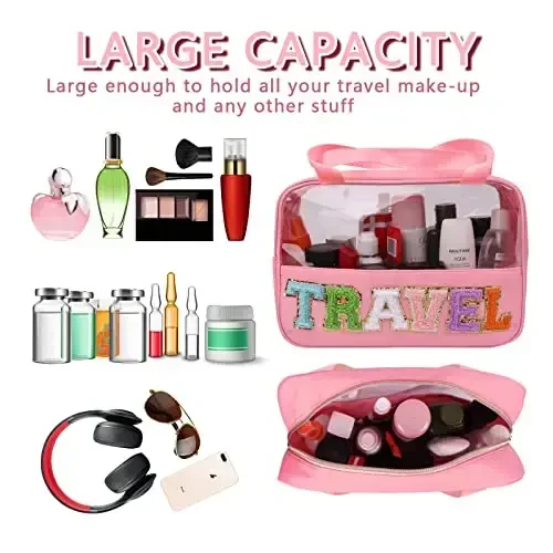 Chenille Letter Patch Travel Bag, Preppy Clear Makeup Cosmetic Bag Large Toiletry Storage Tote Bag with Handle, Transparent Nylon Waterproof Organizer Zipper Pouch for Travel Women Girls(Pink)Seyahatlerinizde ve günlük yaşamınızda stilinizi yansıtırken, eşyalarınızı düzenli ve güvenli bir şekilde taşımanızı sağlayacak Chenille Letter Patch Travel Bag ile tanışın! Bu şık ve kullanışlı makyaj çantası, sadece görünümüyle değil, sunduğu pratik çözümlerle de favoriniz olacak.Öncelikle, çantanın dikkat çekici chenille harf yaması tasarımı, kişisel stilinizi ön plana çıkarmanıza yardımcı olur. Preppy ve modern görünümüyle her ortama uyum sağlayan bu çanta, seyahatlerinizde, spor salonunda veya günlük kullanımda size eşlik edecek ideal bir seçenektir. Şeffaf yapısı sayesinde içindekileri kolayca görmenizi sağlarken, eşyalarınızı tozdan ve kirden korur.Büyük boyutu, makyaj malzemelerinizden kişisel bakım ürünlerinize, seyahat aksesuarlarınızdan elektronik cihazlarınıza kadar her şeyi rahatlıkla sığdırmanıza olanak tanır. Geniş iç hacmi sayesinde eşyalarınızı düzenli bir şekilde yerleştirebilir ve ihtiyaç duyduğunuzda kolayca bulabilirsiniz. Fermuarlı tasarımı, eşyalarınızın güvenliğini sağlarken, su geçirmez naylon malzeme, beklenmedik durumlara karşı ek koruma sunar. Yağmurlu havalarda veya havuz kenarında endişelenmeden eşyalarınızı taşıyabilirsiniz.Çantanın sapı, taşıma kolaylığı sağlarken, dayanıklı malzemesi uzun ömürlü kullanım sunar. İster elinizde taşıyın, ister bavulunuza yerleştirin, bu çanta seyahatlerinizde size her zaman yardımcı olacaktır. Pembe rengi, çantaya ayrı bir şıklık katarken, kadınlar ve genç kızlar için mükemmel bir seçenektir.Chenille Letter Patch Travel Bag, sadece bir makyaj çantası değil, aynı zamanda bir stil ifadesidir. Kullanışlılığı, şıklığı ve dayanıklılığı bir arada sunan bu çanta ile seyahatleriniz artık daha keyifli ve düzenli olacak. Kendiniz için veya sevdikleriniz için harika bir hediye seçeneği olan bu çantayı kaçırmayın! Şimdi sipariş verin ve stilinizi her yere taşıyın!