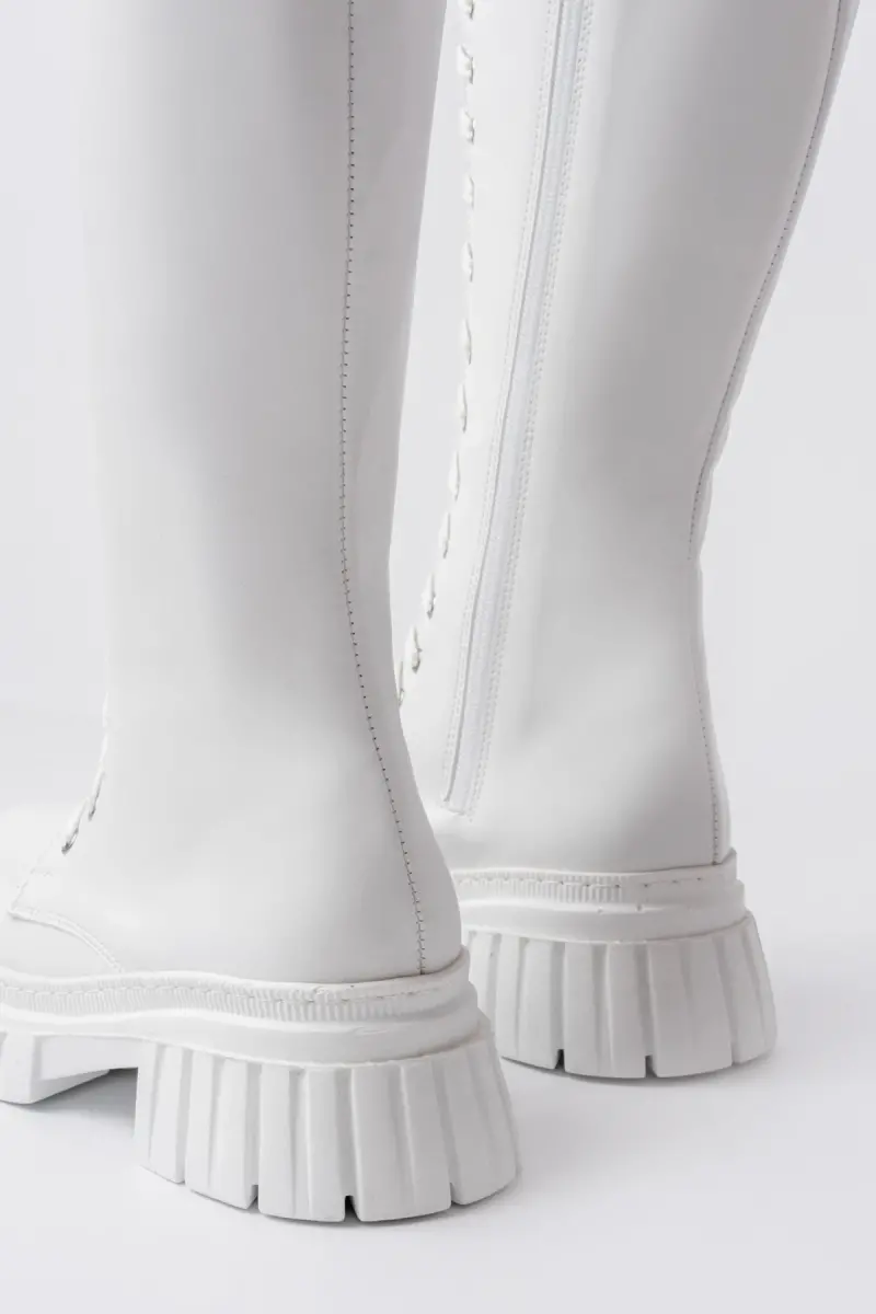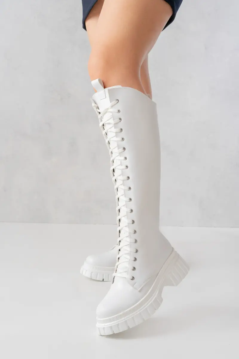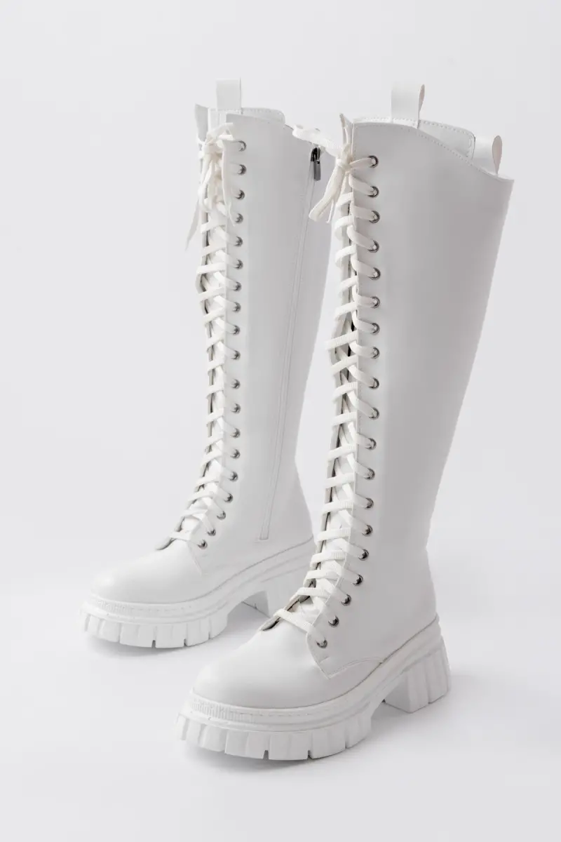 Sophia Uzun Fermuarlı Bağcıklı Kadın Beyaz Çizme-Beyaz