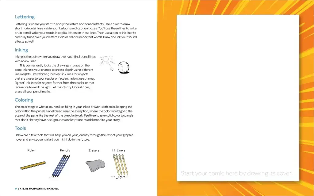 Ищете забавную и познавательную книгу, которая поможет детям раскрыть свой творческий потенциал и воображение? Тогда вы попали по адресу! С книгой "Создай свой собственный графический роман: руководство для детей: напиши и нарисуй свою книгу" дети в возрасте 8-12 лет смогут ощутить всю радость создания собственных комиксов. Пиратские приключения, загадочные события, фантастические истории... любая история, которую они смогут себе представить, может превратиться в захватывающий графический роман. Эта книга позволяет детям объединить свои навыки письма, рисования и воображения, чтобы открыть для себя силу повествования. Дети научатся работать как профессиональные художники комиксов, будут практиковаться в создании набросков сюжета, планировании переходов между панелями и многом другом. Они шаг за шагом освоят процесс создания комикса от начала до конца и смогут заполнить более чем 50 страниц пустых панелей комиксов своими собственными историями так, как им захочется. Они научатся оживлять свои комиксы, добавляя такие детали, как речевые облачка, звуковые эффекты, штриховку и раскраску. Хотели бы они создать нового супергероя, придумать мир, населенный говорящими животными, или поделиться историями из реальной жизни – все, что им нужно, это пустая книга для комиксов и, конечно же, их собственное воображение!