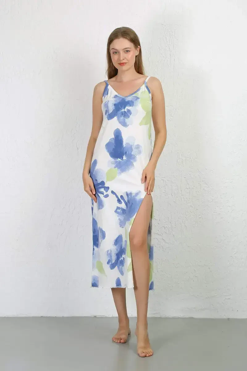 lace strap nightgown, long slit nightgown, jersey nightgown, comfortable nightgown, stylish nightgown