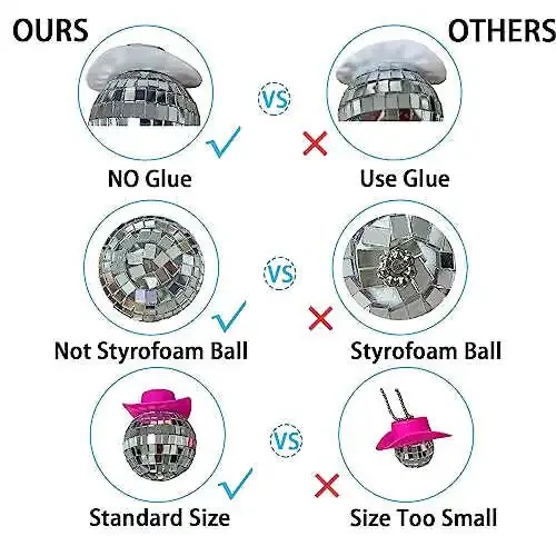 This cute disco ball charm features a vibrant pink color and a reflective mirror surface, creating an eye-catching appearance. You can use it as a cowboy hat accessory, or attach it to your bags, keychains, backpacks, or phone cases.