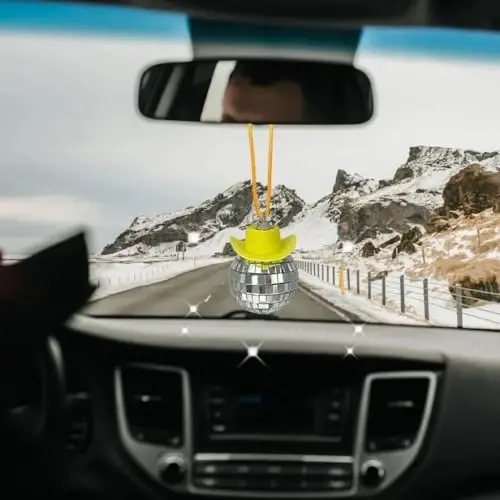 Add a fun and sparkling touch to your car with the SPANSEE Yellow Cowgirl Car Charm! This unique car accessory features a charming combination of a yellow cowboy hat and a disco ball mirror. This eye-catching ornament will transform the interior of your car into a dance floor, captivating you with its glitter, especially when the sun's rays hit it. This disco ball car ornament will change your driving experience completely, putting a smile on your face even on the way to work.This is not just a car accessory, but also a style statement. A perfect option for both men and women, the SPANSEE Yellow Cowgirl Car Charm will attract attention when hung on your car's rearview mirror. But don't limit yourself to just your car! You can also use this versatile disco ball as a decorative element in your home or at your parties. It's even a great alternative for decorating your Christmas tree!The size of the product is carefully designed to not compromise your driving safety. The disco ball, approximately 1.8 x 2.3 inches in size, fits perfectly in your car without damaging your windshield or obstructing your view. Thanks to its adjustable length, you can adjust it to best suit your driving habits. This way, it does not cause discomfort or touch the windshield while driving.SPANSEE Yellow Cowgirl Car Charm is a great gift option not only for yourself, but also for your loved ones. Designed especially for women, this cute car accessory will strengthen the bond between you and your spouse, mother, friends or colleagues by gifting it to them. This yellow disco ball car ornament, which is a fun and sparkling way to show them how much you care, will be an unforgettable gift.