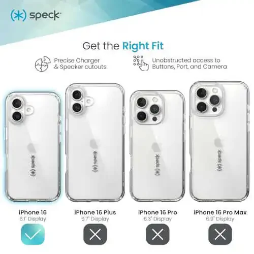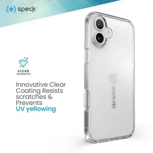 Чехол Speck Clear iPhone 16 Тонкий телефонный | Двухслойный и устойчивый к пожелтению
