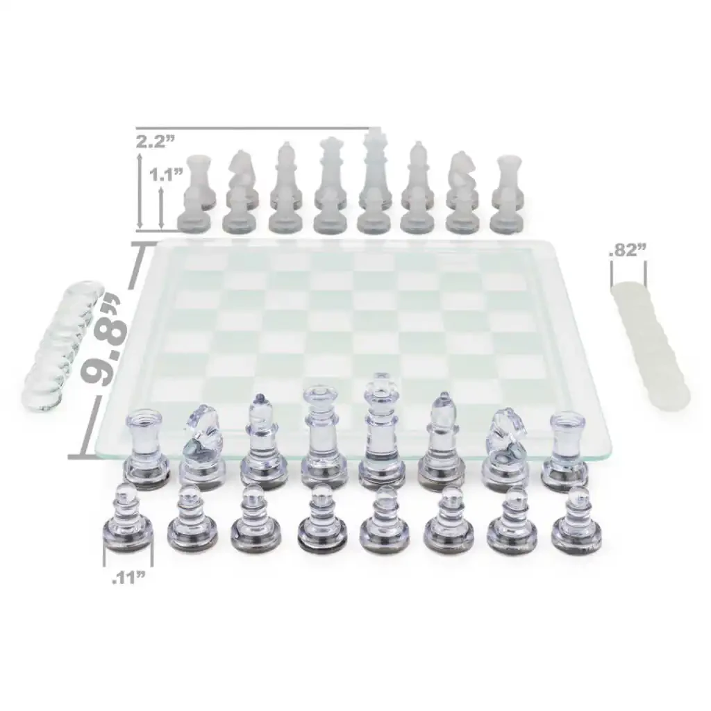 Meet the Clear Chess and Checkers Set with Glass Gameboard from Spin Master Games, a perfect combination of elegance and strategy. This unique game set is a beautiful addition to both your mind and living spaces, and it's suitable for anyone aged 8 and above. This set takes classic chess and checkers to a whole new level and provides a unique experience. You can exhibit it as a decorative piece even when not playing, making it ideal for both gamers and those who appreciate aesthetics. The frosted and transparent stones, along with the glass game board, transform your gaming experience into a visual feast while amplifying the excitement of the game. This set is also a great gift choice. Perfect for the games. Whether you're playing with your family or friends, this set is perfect for creating enjoyable times. Chess and checkers have long been symbols of intelligence and strategy. This set combines these classic games with a modern design to make your gaming experience even more special. Both chess and checkers offer different strategic approaches and countless game variations, making each game a new experience. The Clear Chess and Checkers Set is a must-have in the collections of game lovers. Don't wait any longer to experience the excitement of the game and the magic of elegance at the same time!