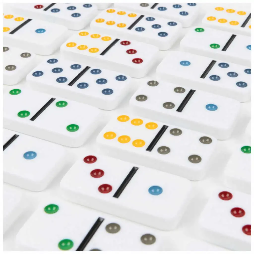 Bu set, 28 adet domino taşı ve 1 adet metal saklama kutusu içerir. Oyun, genellikle 2 ila 4 oyuncu ile oynanır ancak farklı oyun türlerine göre oyuncu sayısı değişebilir. Domino taşları dayanıklı malzemeden (genellikle melamin veya benzeri bir plastik) üretilmiştir. Kutunun boyutları, taşların güvenli bir şekilde saklanması ve setin kolayca taşınabilmesi için idealdir.