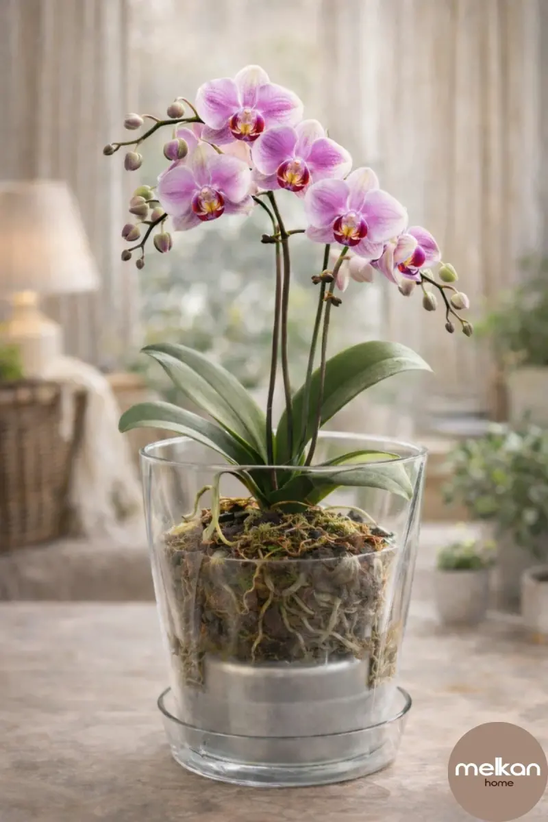 If you are looking for a transparent, aesthetic and practical pot designed for the growth and beauty of your orchids, Burgu Orchid Pot is perfect for you! Its transparent structure allows you to easily observe the development of orchid roots and determine the right time for watering. With its 1.3 liter capacity, it easily meets your orchid's water and nutrient needs.