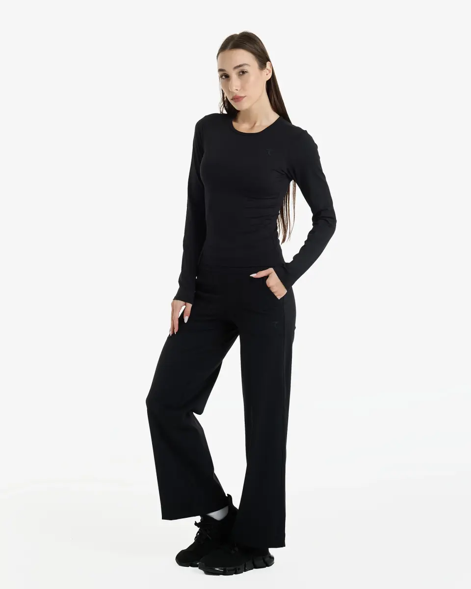 Sports Suit - BLACK, modern yaşamın dinamizmine uyum sağlayan, şıklığı ve konforu bir araya getiren eşsiz bir tasarıma sahiptir. Bu spor takım, sadece aktif yaşam tarzınıza eşlik etmekle kalmayıp, aynı zamanda günlük giyimde de zarif ve bakımlı bir görünüm sunar. Silhouette'ı kusursuzca şekillendiren, vücuda oturan kesimi ile dikkat çeken bu takım, her ortamda stilinizi yansıtmanıza olanak tanır. Sabah yürüyüşlerinden şehirdeki koşuşturmacaya kadar her anınızda size eşlik edecek olan Sports Suit - BLACK, gün boyu benzersiz bir rahatlık ve hareket özgürlüğü sunar.Yüksek kaliteli malzemesi sayesinde uzun ömürlü bir kullanım vaat eden bu spor takım, nefes alabilen yapısıyla terlemeyi en aza indirerek gün boyu ferah kalmanızı sağlar. İster spor yaparken ister arkadaşlarınızla buluşurken, Sports Suit - BLACK her zaman şık ve rahat hissetmenizi garanti eder. Esnek kumaşı sayesinde vücudunuzla birlikte hareket ederek kısıtlama hissi yaratmaz ve her aktivitenizde size özgürlük tanır.Tasarımında sadelik ön planda tutulmuş olup, modern çizgileriyle dikkat çeker. Takımın üst parçası olan uzun kollu üst, vücuda oturan slim kesimiyle feminen bir siluet oluştururken, alt parçası olan düz kesim pantolon ise rahatlığı ön planda tutar. Bel kısmındaki ayarlanabilir bağcıklı elastik bant sayesinde, pantolonu kendi bedeninize göre kolayca ayarlayabilir ve gün boyu konforlu bir kullanım deneyimi yaşayabilirsiniz. Yan cepleri sayesinde telefonunuzu, anahtarlarınızı veya diğer küçük eşyalarınızı güvenle taşıyabilirsiniz. Sports Suit - BLACK ile hem şık görünecek hem de gün boyu rahat edeceksiniz. Bu takım, gardırobunuzun vazgeçilmez bir parçası olacak. İster tek başına ister farklı parçalarla kombinleyerek kendi tarzınızı yaratabilirsiniz. Spor salonundan kafeye, evden ofise kadar her yerde stilinizi konuşturun. Sports Suit - BLACK ile aktif yaşamın keyfini çıkarın!