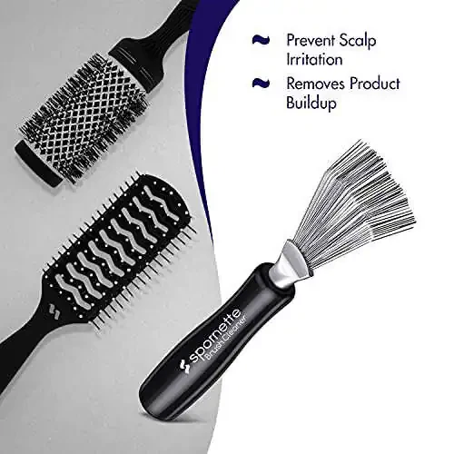 Effortlessly remove tangled hair, dust, dirt, and product buildup from your hairbrushes and combs with the Spornette Hair Brush Cleaner Rake Tool! No matter how full your hairbrush bristles or teeth are, this strong metal rake effectively cleans all kinds of clogs. Prevent scalp irritation that can be caused by dirty brushes. Keeping your hairbrushes clean helps prevent scalp irritation from factors such as product buildup, natural hair oils, dust, and dirt. The Spornette Hair Brush Cleaner Rake Tool is compatible with all types of brushes, including round brushes, flat brushes, and natural bristle brushes. Its ergonomic design allows for comfortable handling and effortless cleaning of your brushes. This professional hairbrush cleaning rake can be used at home, in hair salons, and is practical enough to take with you on your travels. It provides hygienic and effective cleaning of your hairbrushes, ensuring longer-lasting use and a perfect hair care experience. The ideal solution for clean and healthy hair! No more cleaning worries with the Spornette Hair Brush Cleaner Rake Tool!