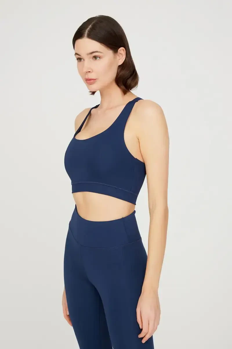 Спортивный бюстгальтер с легкой поддержкой, синего цвета, с деталями на спине и мягкой чашкой