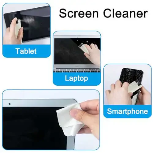 Набор для чистки экранов walrfid с распылителем и щеткой — это идеальное решение для очистки ваших электронных устройств, таких как телевизоры, ноутбуки, iPad, iPhone, мобильные телефоны, MacBook Pro, планшеты, ПК, компьютеры, мониторы, ЖК-экраны и очки. В комплект входят салфетка из микрофибры, спрей для чистки и щетка. Салфетка из микрофибры предназначена для бережного удаления пыли, грязи и отпечатков пальцев с экрана. Спрей для чистки специально разработан для удаления грязи и пятен без потери яркости экрана. Щетка идеально подходит для очистки углов и труднодоступных мест экрана.