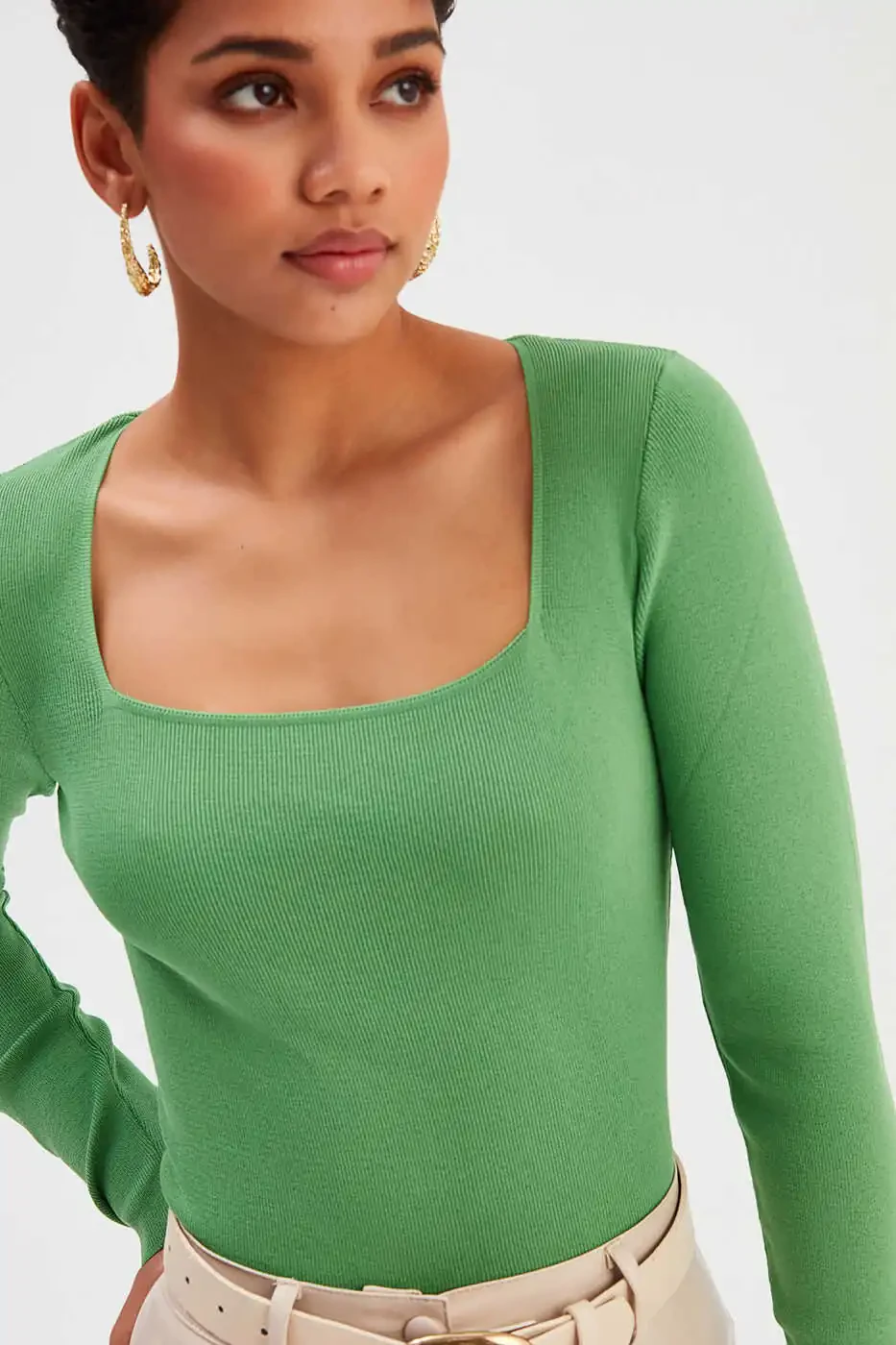 Meet the stylish and comfortable square neck knit that will become a staple in your wardrobe! Its soft texture and modern design will add a new dimension to your everyday style.