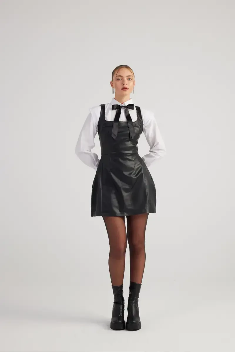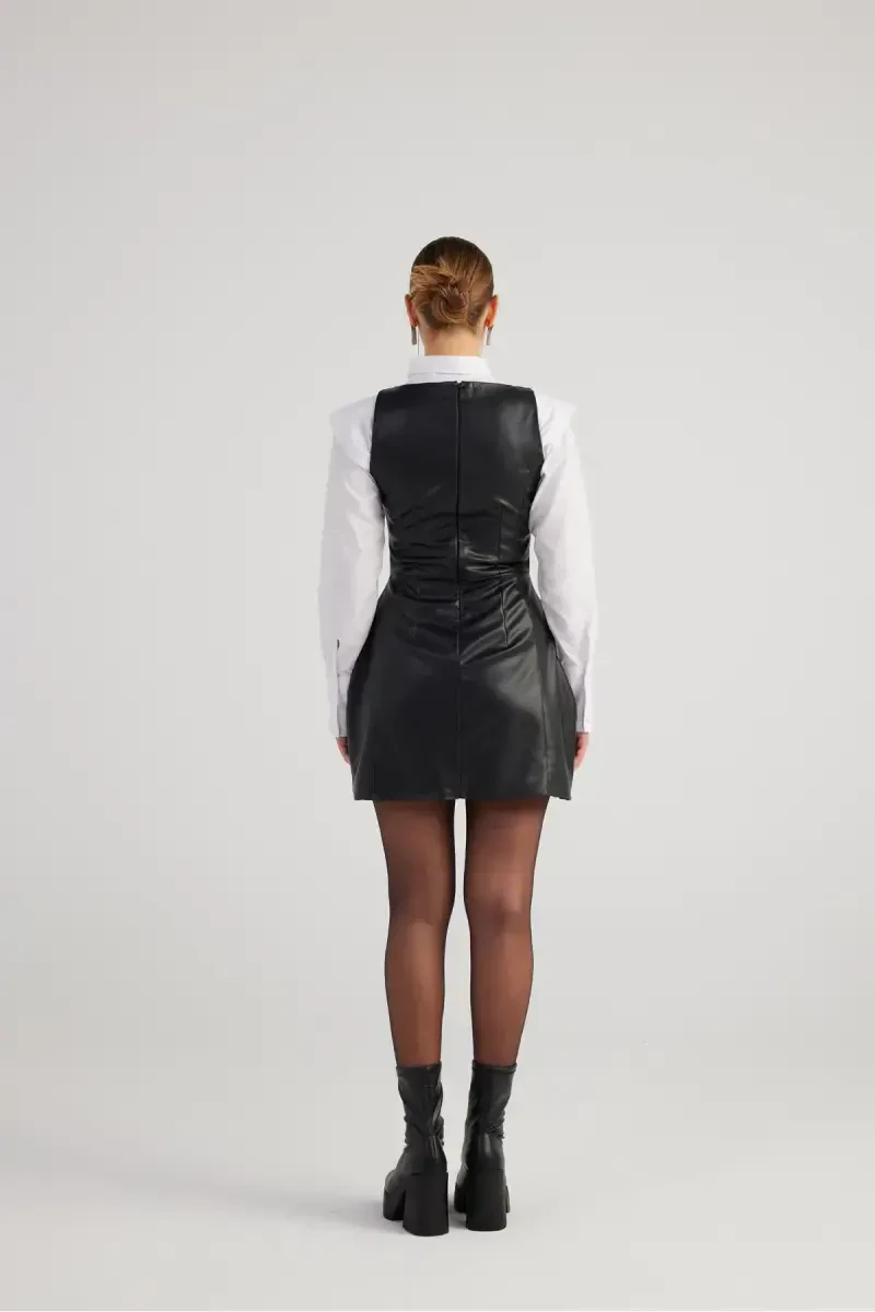 Combine elegance and ethical fashion with the Square Neck Vegan Leather Larissa Dress. This eye-catching mini dress will be an indispensable part of your wardrobe with its modern design and eco-friendly materials. The square neck detail offers an elegant look, while the sleeveless design provides comfortable use even in hot weather. Vegan leather material offers the look and feel of real leather, while creating an animal-friendly alternative. The Larissa dress allows you to stand out in any setting, from special occasions to daily use. Its mini length creates an energetic and youthful style, while its inner lining keeps you feeling comfortable all day long. This dress, which reflects the nobility of black, can be easily combined with different accessories. Whether you want to achieve a stylish look with heels or a more comfortable style with sandals, the Square Neck Vegan Leather Larissa Dress will always help you reflect your style in the best way. Let your style speak at business meetings or enjoyable gatherings with your friends. This dress, which is the choice of those who follow fashion while also thinking about the environment, is a candidate to be one of the most special pieces of your wardrobe. Vegan leather, a pioneer of sustainable fashion, offers both an environmentally friendly and stylish option. The square neck design highlights your facial features, while the sleeveless model does not restrict your freedom of movement. Thanks to its mini length, you get an energetic and dynamic look. Its lined structure ensures that the dress fits perfectly on you. The timeless elegance of black creates an ideal background for all kinds of combinations. You can create your own style by completing this dress with accessories in different colors. For example, you can add energy to your combination with a bright colored bag or a striking necklace. Or you can achieve a simpler and more elegant look with minimal jewelry. The Square Neck Vegan Leather Larissa Dress is not only a stylish option, but also offers a choice that values ethical values. Vegan leather material is obtained through a production process that does not harm animals and is environmentally friendly. Therefore, by wearing this dress, you can both reflect your style and contribute to sustainable fashion. If you want to have both a stylish and environmentally friendly option in your wardrobe, the Square Neck Vegan Leather Larissa Dress is for you. This dress allows you to reflect your style and values at the same time. Choose this special design to stand out and make a difference in any environment.