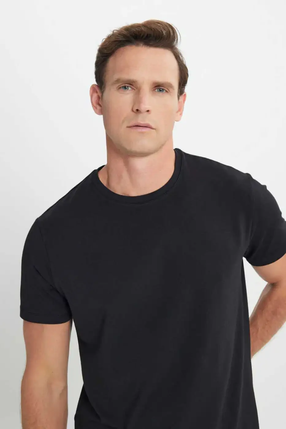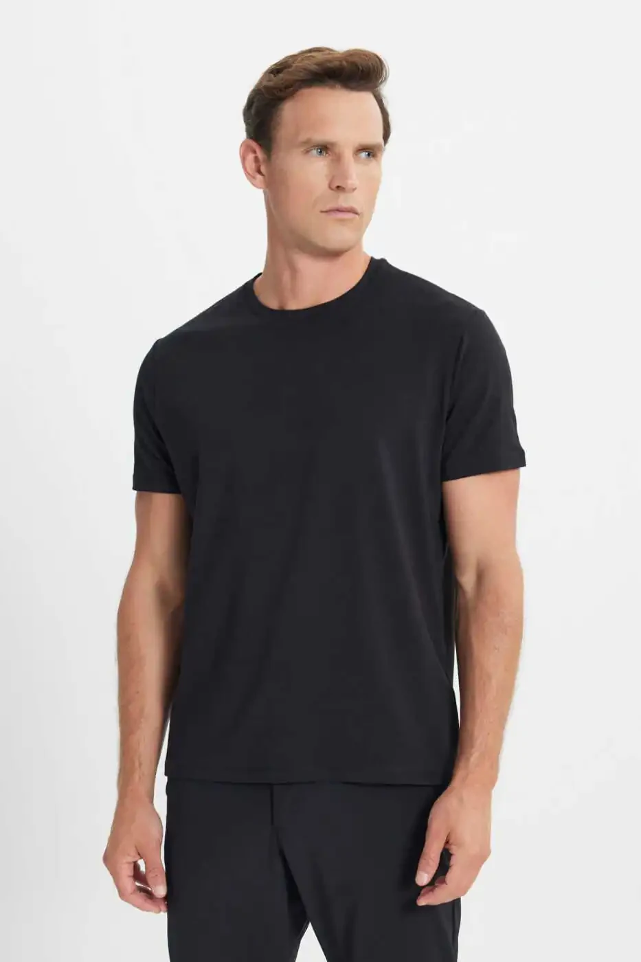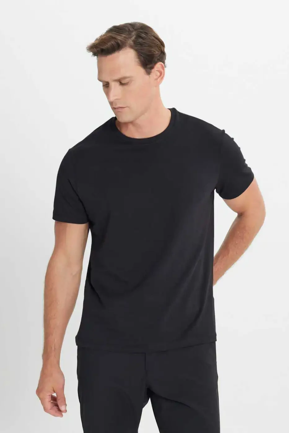The Standard Fit Regular Fit Crew Neck Cotton T-Shirt, produced with Altınyıldız Classics quality, is a candidate to be an indispensable part of your wardrobe. Offering elegance and comfort together, this t-shirt has a timeless design that you can use in all seasons. Its plain black color helps you complete your style by harmonizing with all kinds of combinations. Thanks to its 47% cotton, 47% modal and 6% elastane blend fabric, it offers a comfortable wearing experience all day long. While its cotton texture allows your skin to breathe, the softness of the modal fabric caresses your skin. The elastane content ensures that the t-shirt fits your body perfectly and does not restrict your freedom of movement. Its standard fit cut creates a comfortable silhouette that hugs your body but does not constrict. The crew neck detail offers a modern and stylish look, while the short-sleeved design is an ideal option that you can prefer especially in hot weather. The pocketless design protects the simple and minimalist line of the t-shirt, allowing you to easily combine it with different accessories. Thanks to its seasonless feature, this t-shirt, which you can wear in any season of the year, will be one of the basic pieces of your wardrobe. This t-shirt, bearing the signature of Altınyıldız Collection, is produced in accordance with high quality standards. This t-shirt, which you can easily find with Product Code: 4C4800000012SYH, is a suitable option for both daily use and special occasions. You can create a more formal look by combining it with a stylish jacket or blazer, or a more casual style with jeans or shorts. Altınyıldız Classics Standard Fit Regular Fit Crew Neck Cotton T-Shirt is the perfect choice to add elegance and comfort to your style. This product may be offered by more than one seller. While choosing this t-shirt listed by different sellers on Trendyol, you can determine the most suitable option for you by paying attention to seller ratings, delivery times and shipping advantages. In addition, thanks to the free return option within 15 days, you can easily return the product if you do not like it.