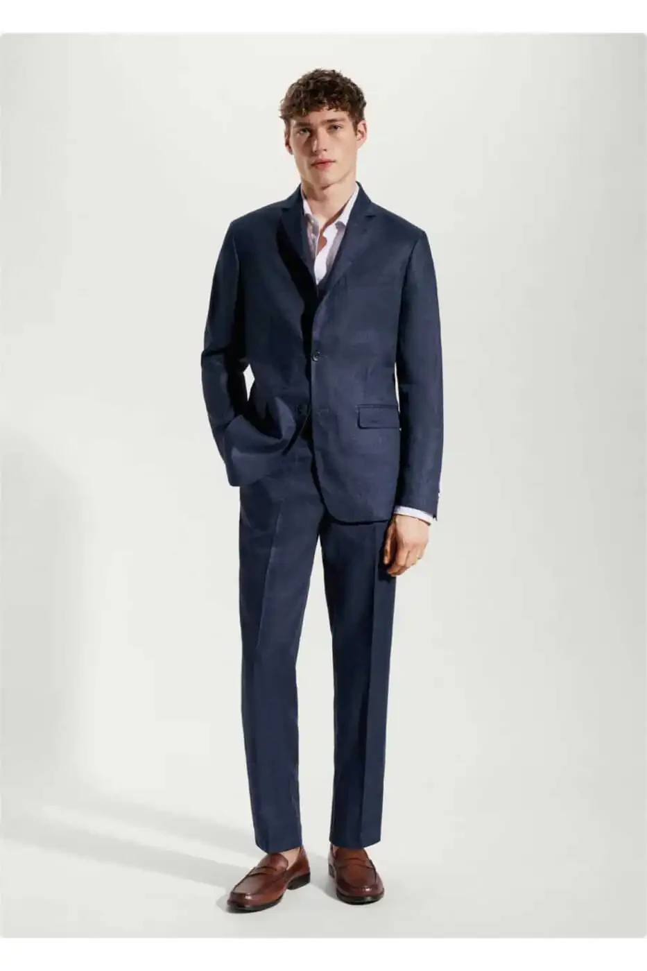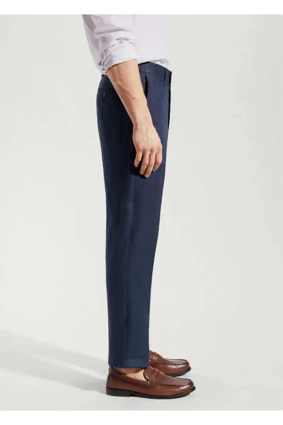 **100% льняные брюки**Этот продукт отправляется компанией **Trendyol** и продается по акционной цене, осталось менее 5 единиц в наличии.Эти брюки из 100% льна с зауженным кроем и стандартной талией. У них легкая ткань и застежка на скрытые пуговицы, застежку и молнию. Брюки включают в себя петли для ремня и имеют два кармана по бокам. Они со складками спереди и прямыми штанинами. Сзади расположены два кармана с клапанами на пуговицах.Благодаря слегка зауженному крою эти брюки обеспечивают более плотное прилегание и предлагают более стильную альтернативу классическим костюмам. Их можно сочетать с свитером или футболкой для более повседневного образа или нарядить в рубашку и галстук для особых случаев.Являясь частью нашей коллекции Brasilia, эти брюки входят в двухкомпонентные комплекты с различными дизайнами. Для создания смешанного образа рассмотрите наши изделия итальянского пошива. Дополните свои зимние наряды, сочетая эти брюки с нашим ассортиментом подходящих пальто и свитеров.**Материал:*** 100% льна* Окантовка: 53% полиэстер, 47% вискоза* Подкладка кармана: 65% полиэстер, 35% хлопок**Размеры:*** Внутренний шов: 84,9 см* Длина бокового шва: 113,0 см**Инструкции по уходу:*** Не стирать* Не отбеливать* Гладить при максимальной температуре 110°C* Химчистка с перхлорэтиленом* Не сушить в стиральной машине