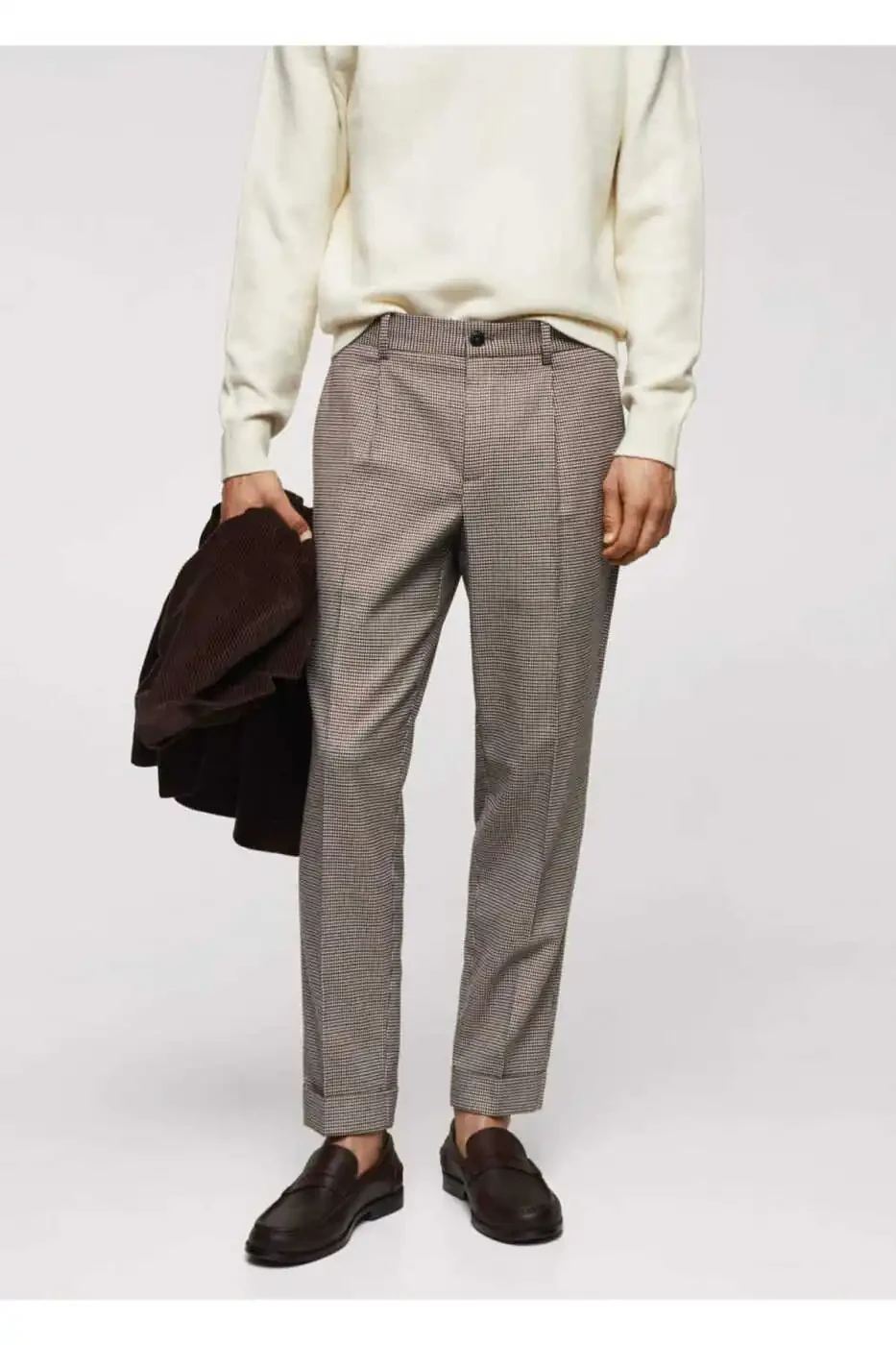Мелкий гусиный глаз, шерстяная смесь, узкие, брюки