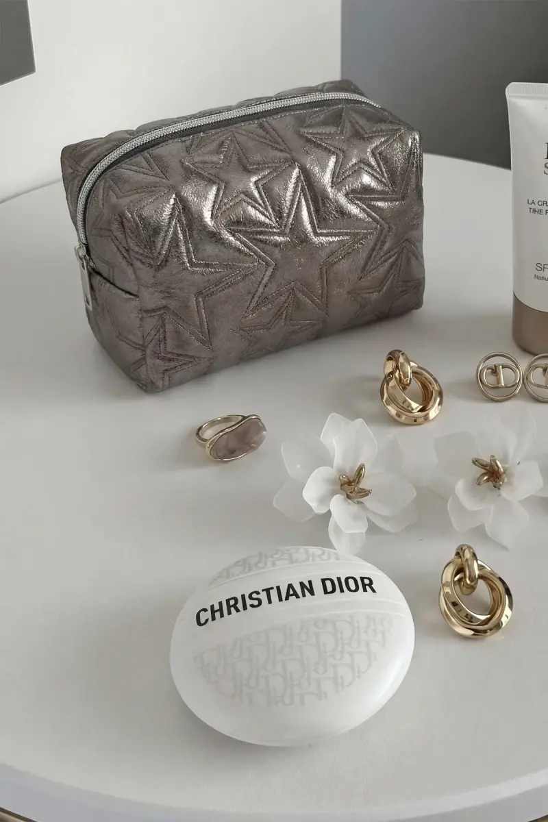 Stargirl Platin Yıldız Makyaj Çantası-Silver3