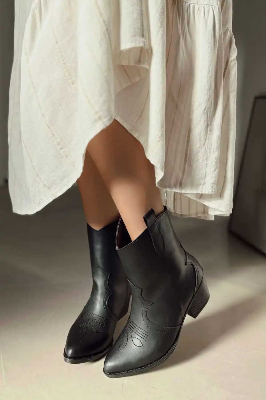 Сочетающие в себе стиль и комфорт, женские ковбойские сапоги в западном стиле Shirley будут отражать вашу уверенность в каждом шаге. Изготовленные из высококачественной кожи, эти сапоги предлагают прочность и элегантность. Декорированные изящными вышивками, дизайн сочетает в себе западный стиль с современным штрихом. Высокий каблук обеспечивает как стильный вид, так и комфорт при ходьбе.