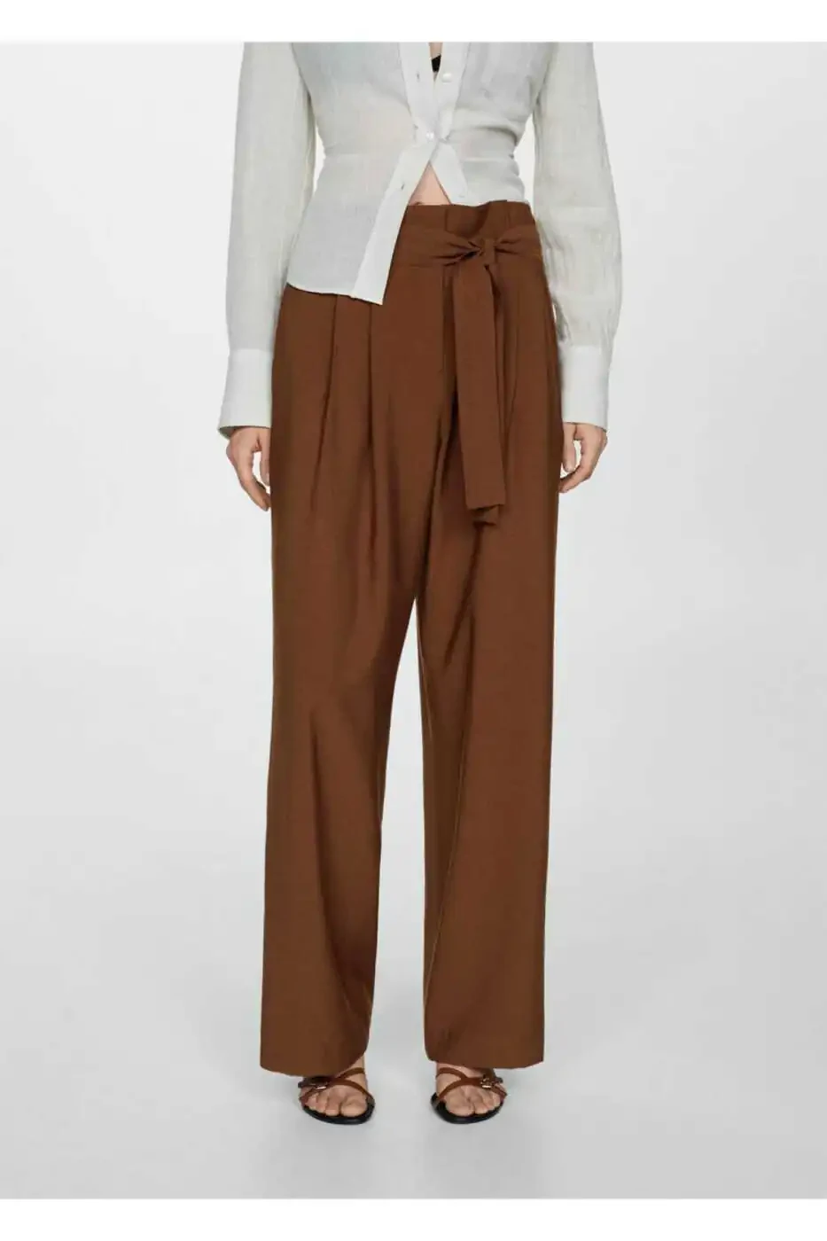 Belted pants, straight-leg pants, long pants, comfortable pants, stylish pants