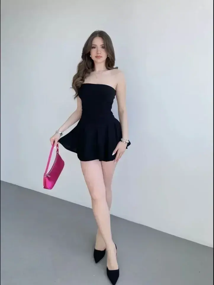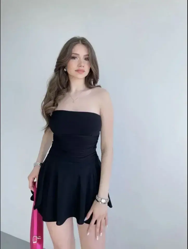 Straplez Mini Etek Görünümlü Şortlu Elbise Büzgülü Şık Yazlık - SiyaModazoneodelin Ölçüleri: Boy: 165, Kg: 55, Göğüs: 90, Bel: 72, Kalça: 100Modelin üzerindeki ürün M/38 bedendir