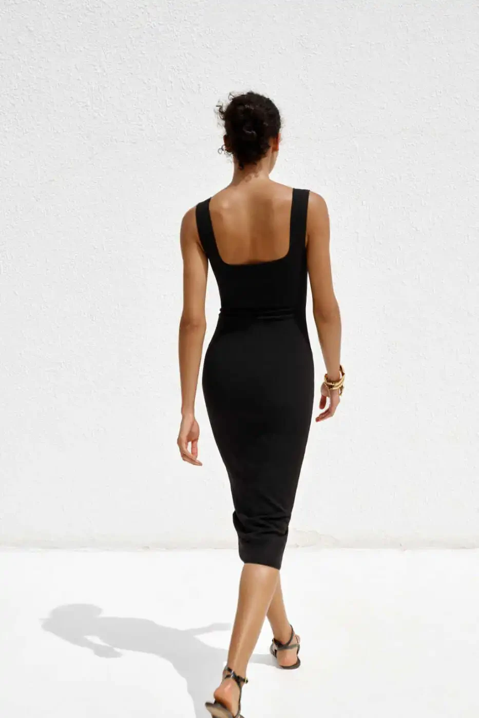 STRETCH SQUARE NECK DRESS - Black, a candidate to be one of the indispensable pieces of your wardrobe! This midi dress, which offers both a stylish and comfortable look, will accompany you in a wide range from special invitations to daily use. This design, which attracts attention with its thick straps and modern square neckline, highlights your feminine silhouette, while the softness of the knitted fabric offers comfort throughout the day. One of the most distinctive features of the dress is that it creates an elegant look thanks to its form-fitting cut. The flexible structure of the knitted fabric gently wraps your body without restricting your freedom of movement. The square neckline adds both a modern and classic touch and can be easily combined with different accessories. Whether you attend a special invitation with a stylish necklace or create a daily combination with sneakers, this dress will suit every style. When the elegance of black and the comfort of knitted fabric come together, a timeless piece emerges. STRETCH SQUARE NECK DRESS - Black stands out with its feature of being wearable in all seasons. You can combine it with a jacket or cardigan in cold weather and wear it alone in hot weather. Its midi length suits every body type while offering elegance and comfort together. This dress, which should definitely be in your wardrobe, will add a sophisticated touch to your style. Feel stylish and confident at all times with this dress that will accompany you both in daily use and on special occasions. The quality of its fabric and the care in its workmanship offer a long-lasting use. Therefore, STRETCH SQUARE NECK DRESS - Black is a candidate to be your wardrobe's favorite piece.