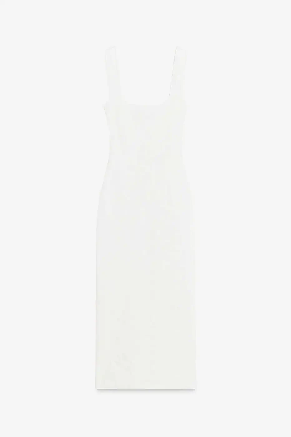 Experience elegance and comfort with the STRETCH SQUARE NECK DRESS-Off-white. This midi dress gently hugs your body thanks to its special knit fabric, allowing you to move comfortably throughout the day. Its thick straps and modern square neckline emphasize your elegance, while its off-white color offers a timeless look. This dress, which you can choose for daily use or a special occasion, is a candidate to be an indispensable part of your wardrobe. The dress's knit fabric provides a soft touch to your skin, while its flexible structure perfectly reveals your body lines. The square neckline offers a modern and elegant look, while the thick straps provide a comfortable wearing experience. Its midi length allows it to be easily combined with all kinds of shoes and accessories, while its off-white color adapts to any environment. This special design dress not only offers a stylish look but also a practical use. Its easy-to-wear and take-off structure saves you time on your busy days. The durability of the knit fabric offers long-lasting use, while its easy-to-clean feature provides ease of use. STRETCH SQUARE NECK DRESS-Off-white is an ideal choice for women who want to be both stylish and comfortable. With its wearable structure in all seasons, it will be one of the most preferred pieces of your wardrobe. You can create different styles by combining it alone or with a jacket or cardigan. Always feel stylish and comfortable in this dress.