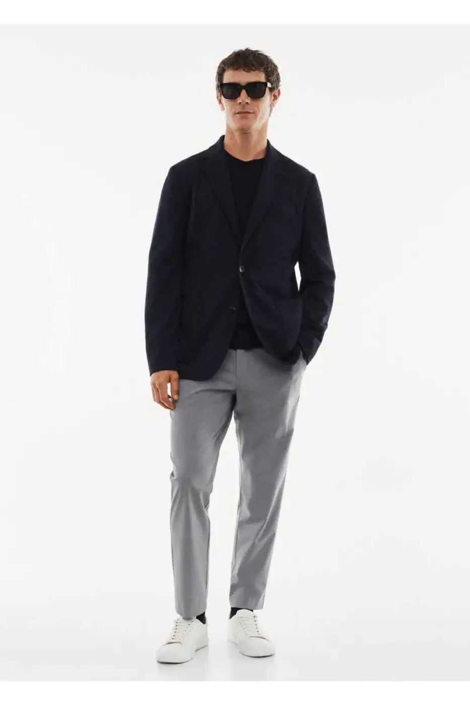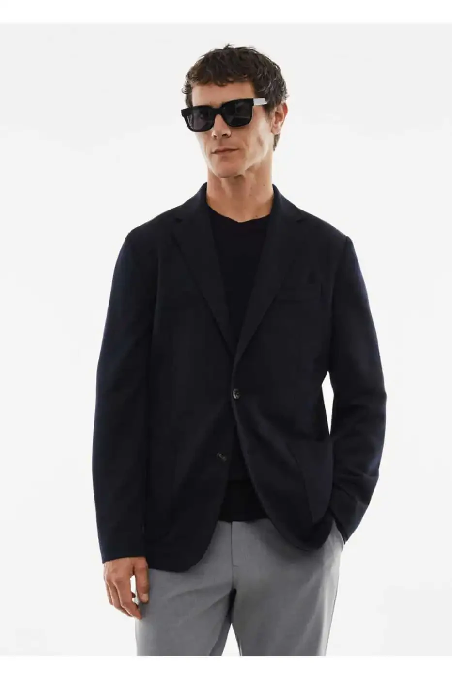 **Stretch Wool Blazer**This product will be shipped by Trendyol.**Product Features:*** Performance Collection* Brushed wool blend fabric* Thermoregulation: Regulates body temperature* Four-way stretch fabric* Machine or hand washable* Slim fit* Lightweight fabric* Collared* Button-front closure* Chest welt pocket* Front patch pockets* Long sleeves with button cuffs* Straight hem* Double-vented design* Partially lined* Interior zip pocket**Model Measurements:*** Height: 190 cm* Size: 50**Materials:*** 56% polyester* 36% virgin wool* 8% polyamide* Lining: 56% polyester, 44% viscose**Dimensions:*** Side seam length: 48.2 cm* Back length: 79.1 cm**Care Instructions:*** GENTLE CYCLE MACHINE WASH AT MAX. 30°C* DO NOT BLEACH* IRON AT MAX. 110°C* PERCHLOROETHYLENE DRY CLEAN* DO NOT TUMBLE DRY