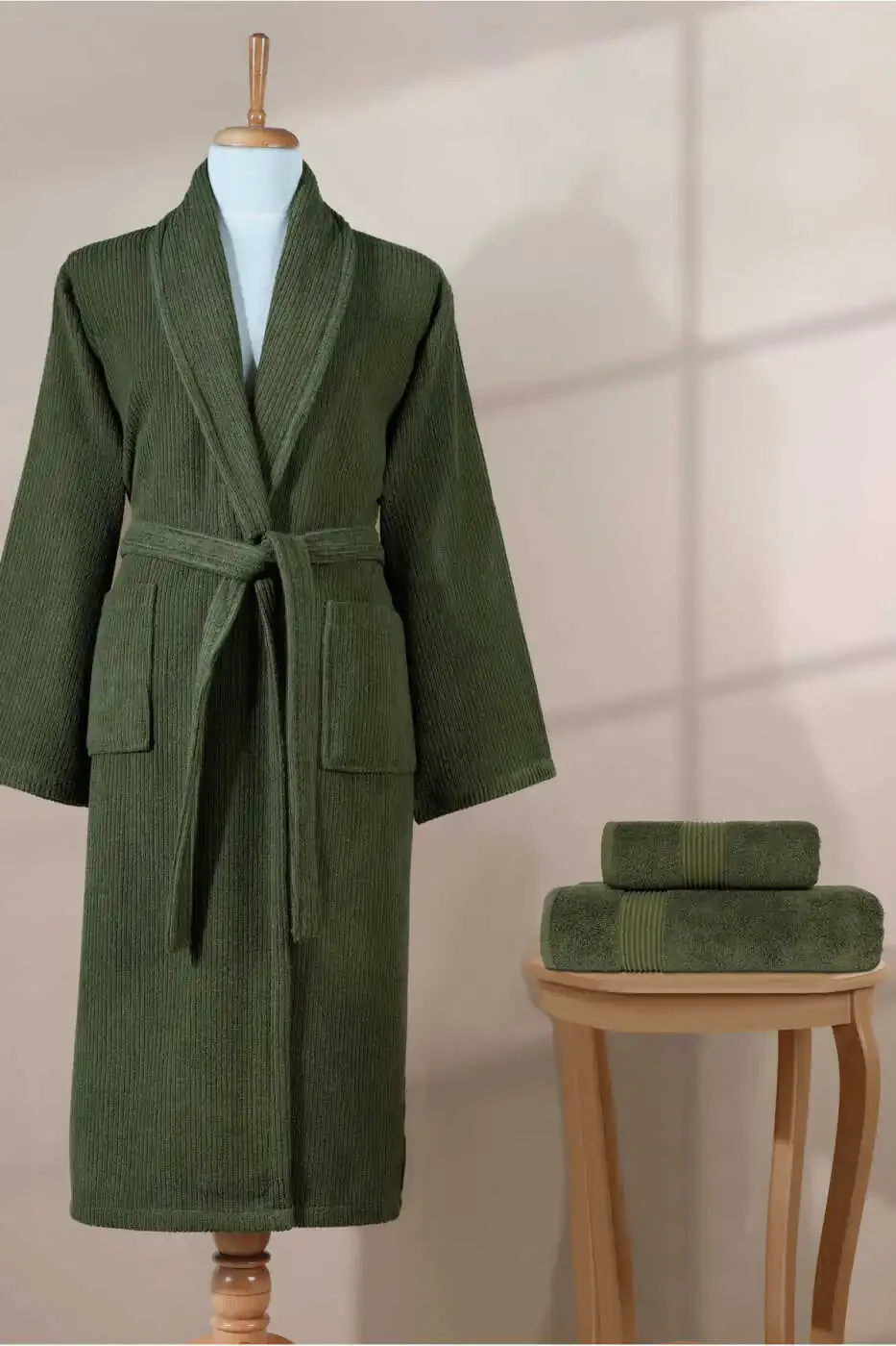 Bring luxury and comfort to your bathing experience with the Striped Bathrobe Set, made from 100% Certified Cotton in 3 Pieces. This special set is made of high-quality cotton and stands out with its soft texture and stylish design. It is an ideal choice for relaxing after a bath, drying off by the pool, or enjoying a spa. The bathrobe, towel, and head towel included in the set offer a perfect combination for your daily use. The 100% cotton fabric gently touches your skin and allows you to dry quickly with its high water absorption capacity. Offering a modern look with its striped pattern, this set adds elegance to your bathroom while offering long-lasting use. The fact that it is made of certified cotton guarantees that the product does not contain any harmful substances and has undergone an environmentally friendly production process. The Striped Bathrobe Set, a perfect gift option for yourself or your loved ones, combines comfort and quality and transforms your bathing rituals into a pleasant experience. Thanks to its soft texture, it does not irritate your skin and provides a feeling of freshness throughout the day. The comfortable cut and useful pocket of the bathrobe offer practical use, while the towel and head towel are also produced with the same quality. This set is not just a bathroom textile product, but also an expression of a lifestyle. While bringing elegance and order to your bathroom, it also offers you the comfort you deserve. This set, which you can use for years as if it were the first day thanks to its long-lasting structure, is an environmentally friendly option that is also friendly to your budget. Feel special after every bath with the Striped Bathrobe Set.