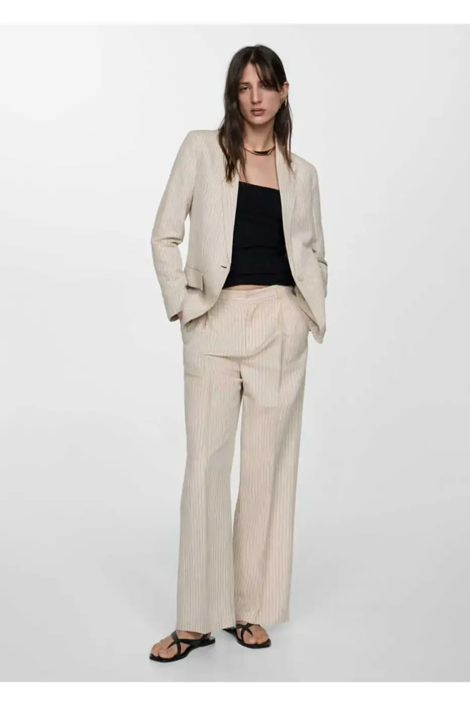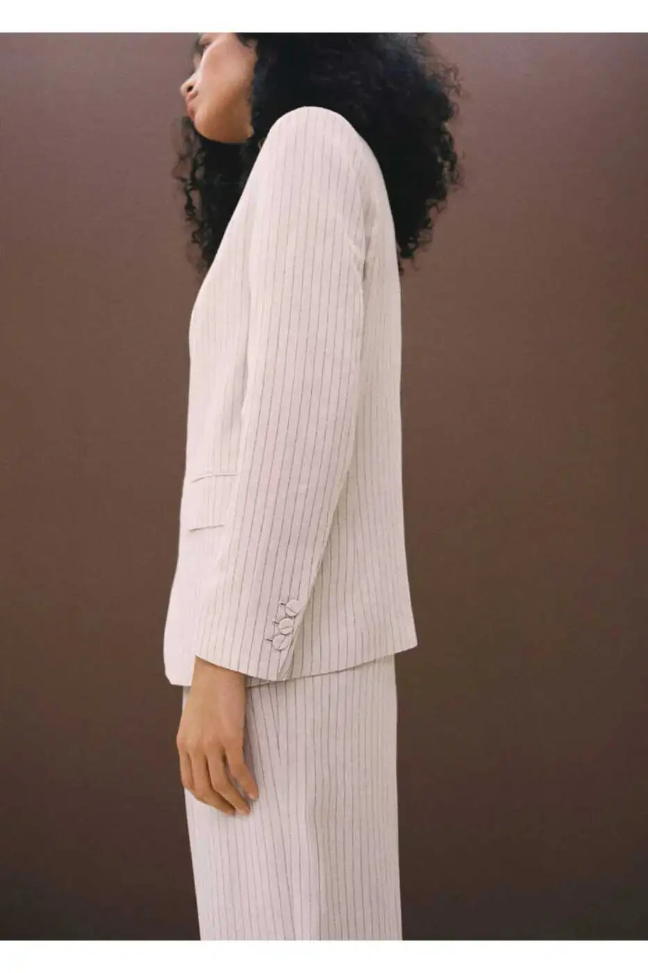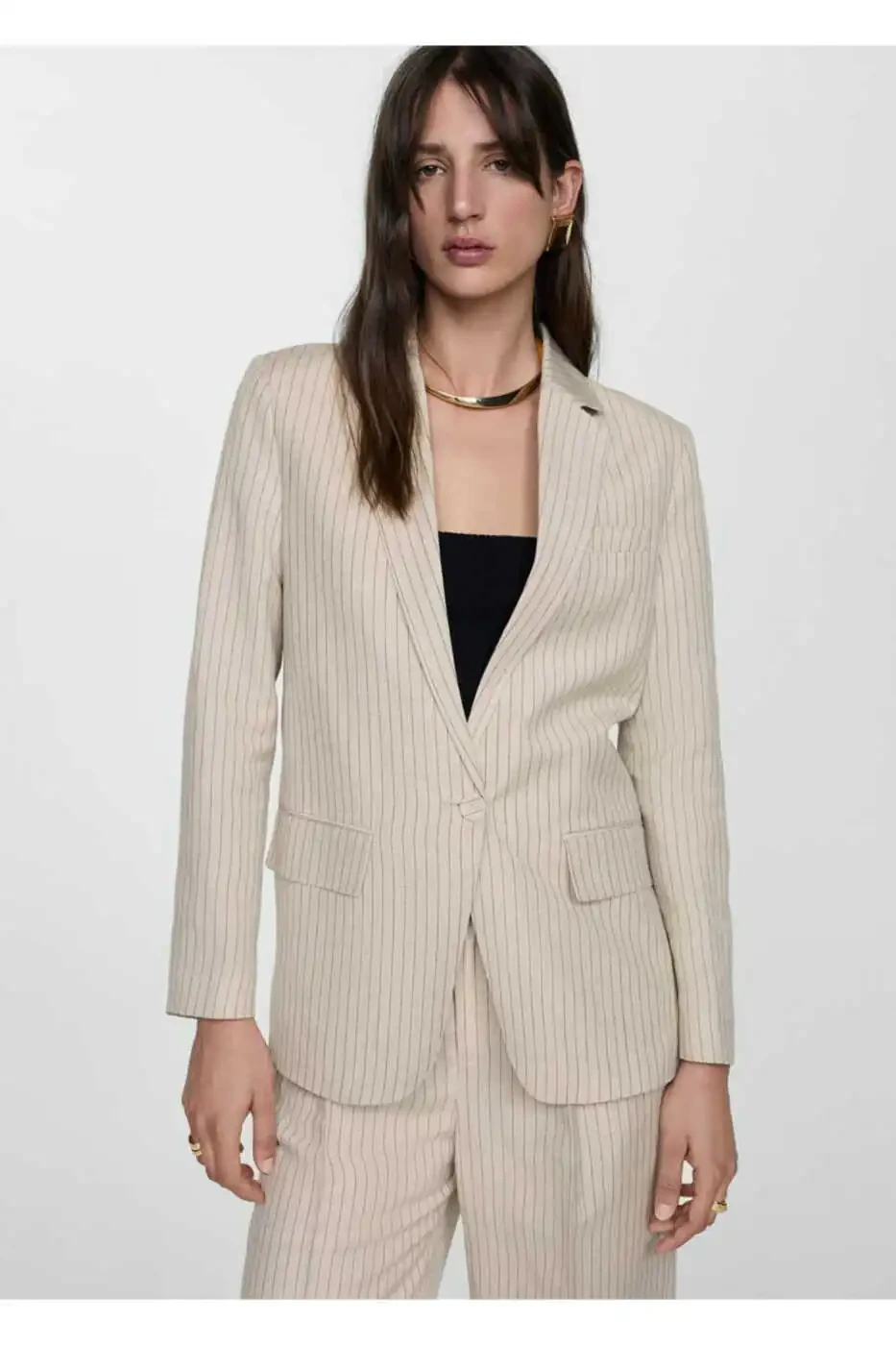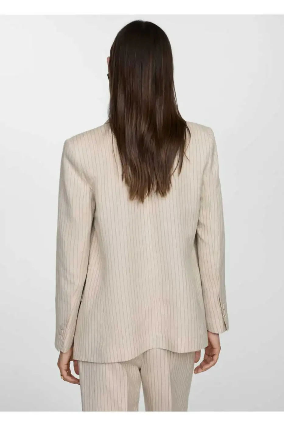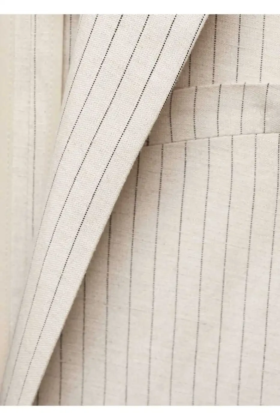 Striped blazer jacket is a versatile and stylish piece that should be in every man's wardrobe. Its linen blend fabric, made of 55% linen and 45% viscose, combines breathability and comfort, while the elegant striped pattern offers a timeless style.