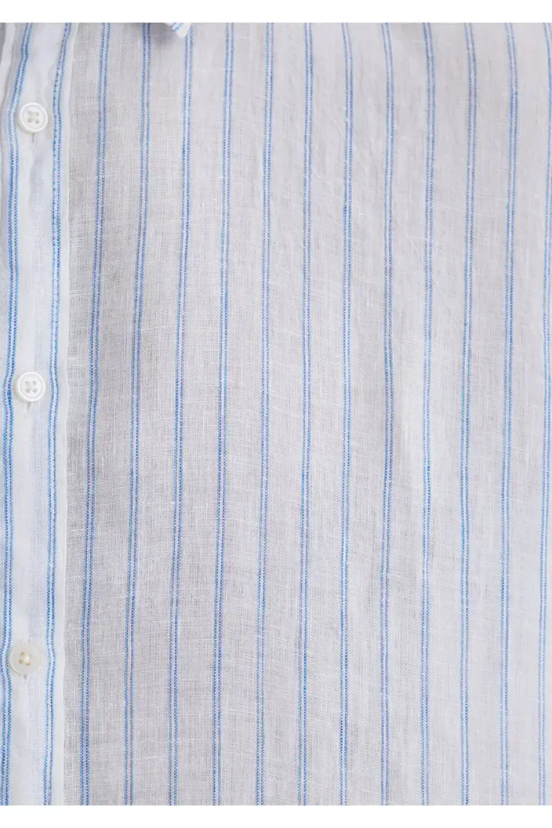 linen shirt, striped shirt, blue shirt, men's shirt, long sleeve shirt, regular fit, normal fit, linen fabric, summer shirt, made in Turkey shirt