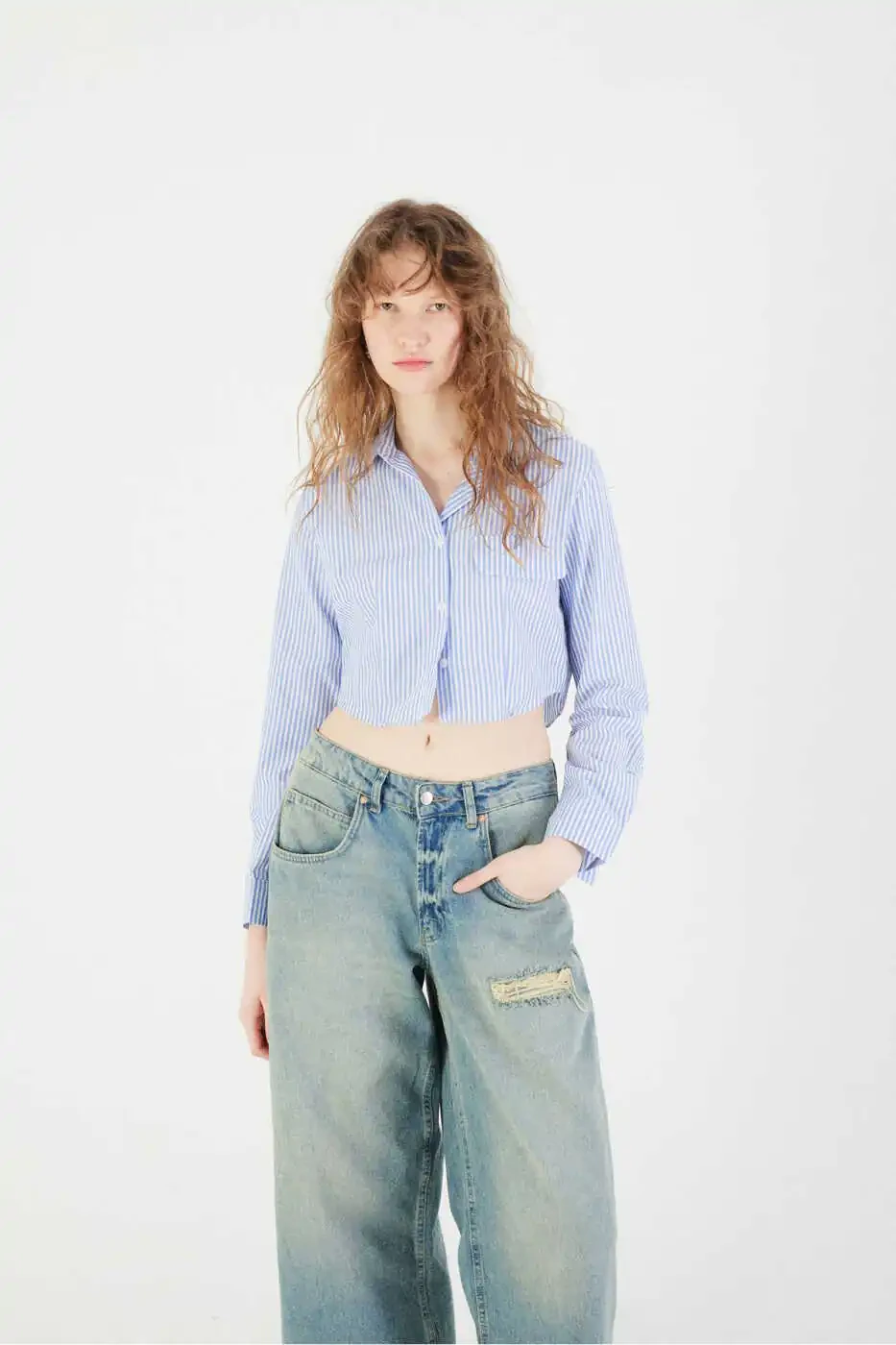 Introducing the Striped Long-Sleeved Crop Shirt G0070-y12, combining style and comfort! This stunning shirt, shipped by Addax, awaits you at a campaign price. More than 10 units are in stock and offered by multiple sellers. Sellers are ranked according to criteria such as price, seller rating, delivery time, promotions, shipping cost, and express delivery. A perfect choice to save time and reflect your style, this crop shirt is destined to become your wardrobe's new favorite. It will complement your style both in your daily life and at special events. Its comfortable cut offers all-day comfort, while its stylish stripes and details provide a striking look. Our product is made from a 65% cotton and 35% polyester blend, offering both a soft touch and durability. You can purchase with peace of mind thanks to the 15-day free return option. Please visit the relevant page for return conditions. The product on the mannequin is size 36/S, and detailed measurements are provided below. Please note that there may be slight variations in color due to lighting differences in product photography. Don't miss this opportunity with limited stock!