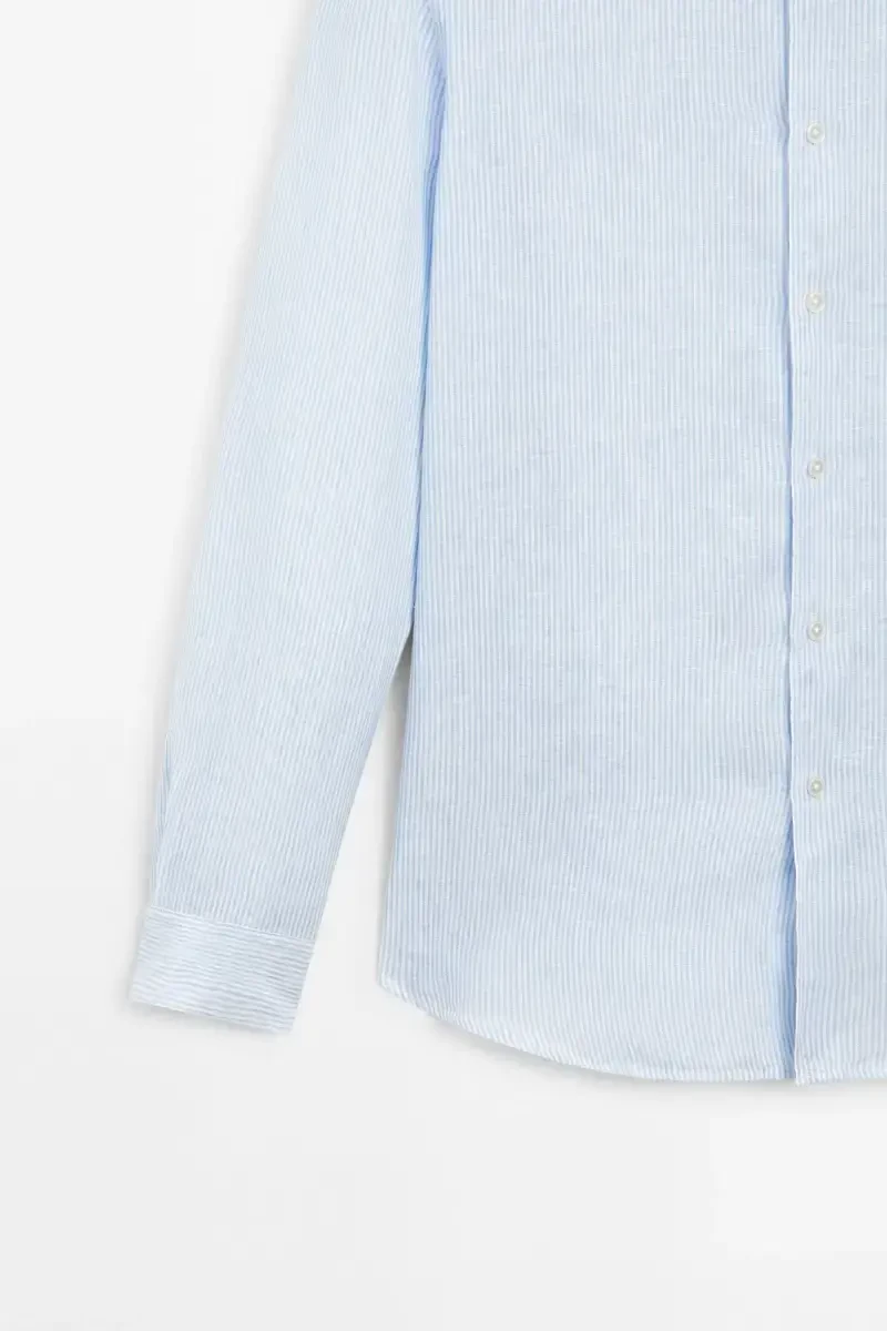 The striped slim fit linen shirt combines elegance and comfort, making it an indispensable item for warm weather. Produced with Massimo Dutti quality, this shirt offers all-day comfort thanks to the lightness of its natural linen fabric. Its slim fit cut provides a modern look with its body-hugging structure, while its striped pattern adds movement to your style. The linen texture of the shirt prevents sweating with its breathable structure, helping you stay cool even in hot weather. It is an ideal choice for creating a stylish combination whether for daily use or for a special occasion. You can easily combine it with jeans, chino pants, or shorts and create different styles. The natural wrinkled appearance of linen adds a characteristic touch to the shirt, while the ease of ironing offers practicality. This shirt, which will be one of the essential pieces of your wardrobe, is an excellent option for men looking for both elegance and comfort. The model is 183 cm tall and wears size L. You can refresh your style by trying this stylish and comfortable shirt. Stocks of the product are limited, so you can place your order immediately to avoid missing out. You can easily order via Trendyol and take advantage of the free return option within 15 days. Complete your style and make a difference in any environment with this special design shirt from Massimo Dutti.