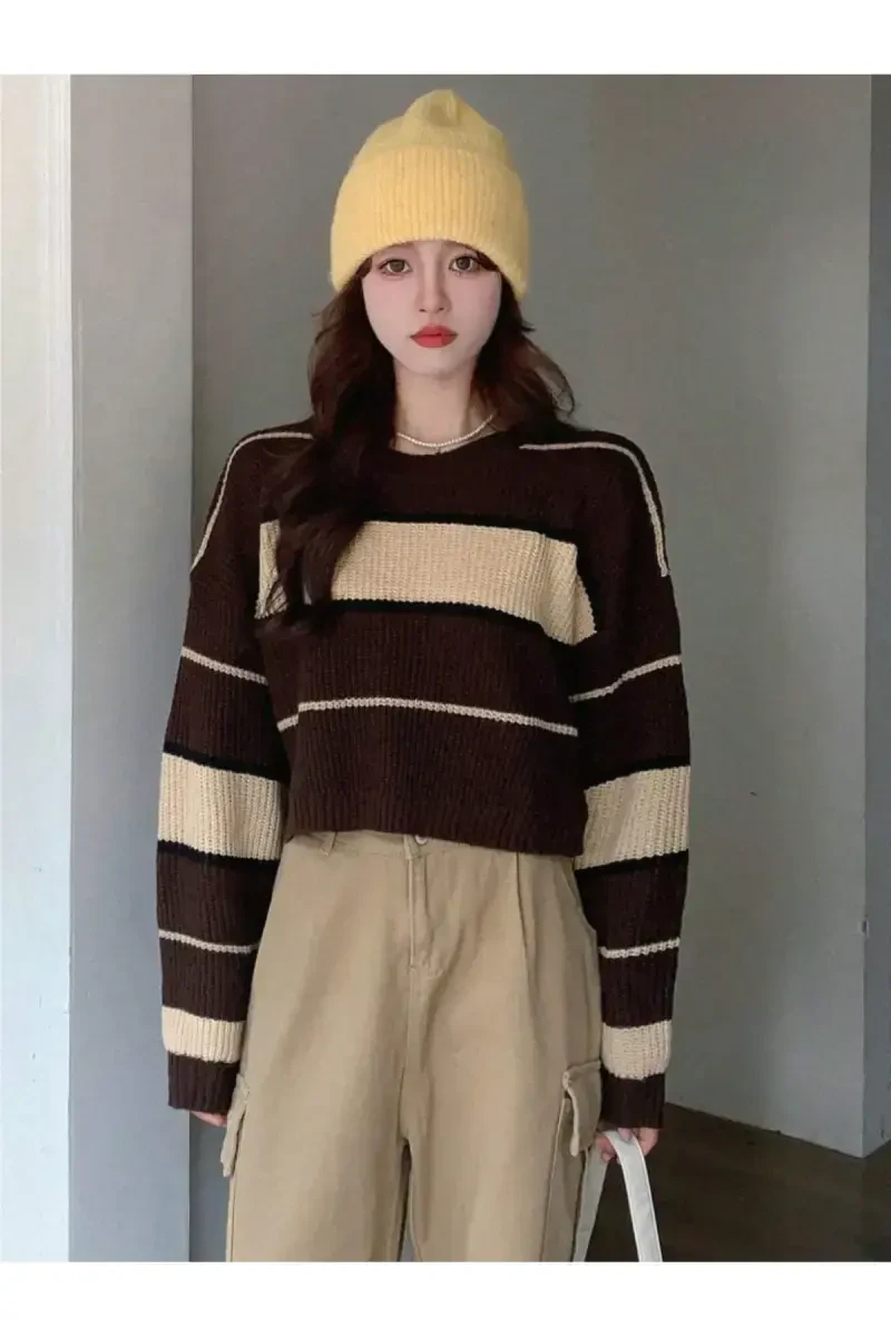 Striped Cable Knit Crop Women's Sweater is ready to be the star of your winter wardrobe with its enchanting shade of coffee. This special design combines both elegance and comfort, allowing you to stand out in any setting. The cable knit pattern adds a unique touch to the sweater, while the striped details create a modern feel. The crop cut pairs perfectly with high-waisted pants or skirts, helping you achieve a trendy look.Made from high-quality yarns, this sweater feels soft against your skin and keeps you comfortable all day long. It keeps you warm in cold weather while preventing perspiration thanks to its breathable structure. This way, you stay warm and have a comfortable experience all day long.The sweater can be easily preferred for daily use as well as for special occasions. It ensures that you always look stylish and well-groomed at the office, at school, when meeting with friends, or when going out for dinner. You can easily combine it with your accessories to reflect your style. For example, you can complete your combination with a stylish necklace or earrings, and add color to your style with scarves and shawls in different colors.Striped Cable Knit Crop Women's Sweater not only offers a stylish look, but also promises long-lasting use. Thanks to its high-quality material and careful workmanship, it will maintain its place in your wardrobe for many years. With proper care, it retains its original form and color for a long time.This sweater is poised to be a must-have for stylish women. It is an ideal choice for women who embrace both modern and classic styles. You can make your loved ones happy by giving this piece, which should definitely be in your wardrobe, as a gift. Enjoy giving them a gift that is both stylish and useful. Express your style with the Striped Cable Knit Crop Women's Sweater and make a difference in every environment!