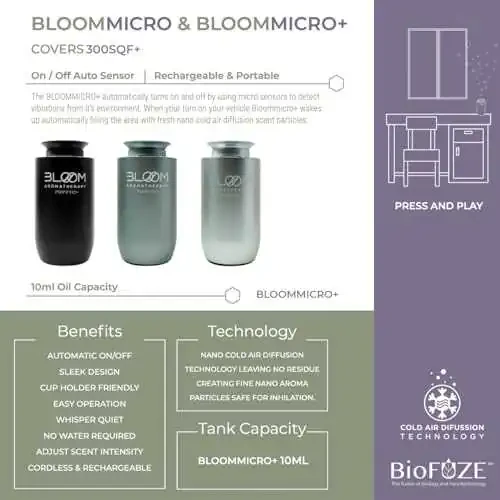 BloomMicro+ Onyx, sadece arabalar için değil, aynı zamanda ev, ofis veya seyahatlerinizde de kullanılabilir. Kompakt boyutu ve şık tasarımı sayesinde her yere kolayca taşınabilir.