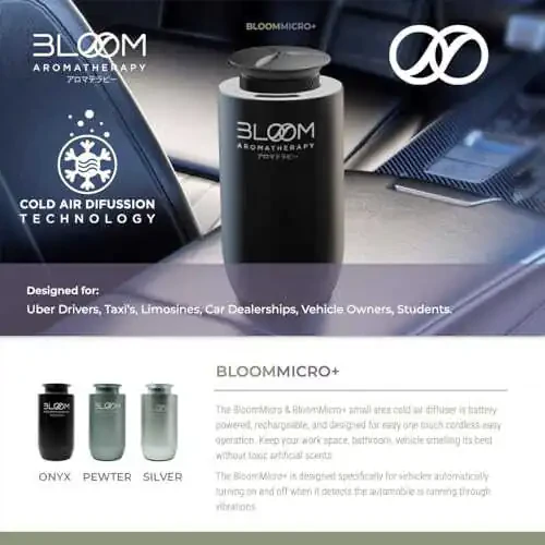 BloomMicro+ Onyx, sadece suya ihtiyaç duymayan, sadece birkaç damla uçucu yağla havayı ferahlatan ve keyifli bir atmosfer yaratan bir araba ve ev difüzörüdür. En sevdiğiniz esansiyel yağları bu şık ve kullanışlı cihazda kullanarak, aracınızda veya evinizde her zaman güzel kokuların tadını çıkarın.