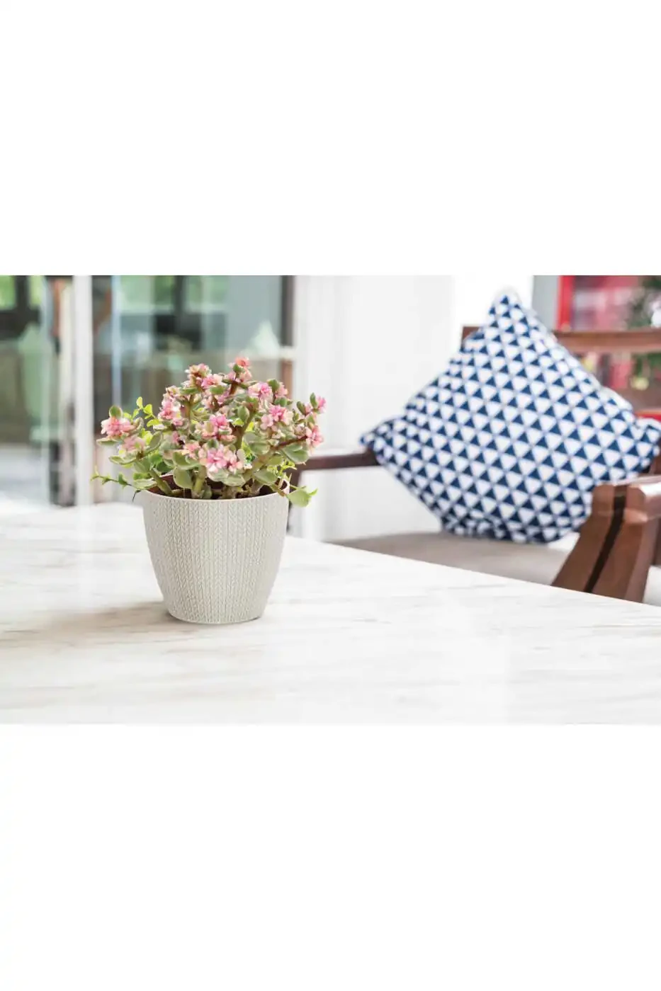 Sümela Knitted Pot No3 offers an ideal living space for your plants while enriching the atmosphere of your home or garden. The knitted pattern gives the pot a natural and warm look, while the rose powder color creates a modern and elegant feel. Its 2.5-liter internal volume provides enough space for various plant species, while its self-saucer feature prevents water accumulation after watering, contributing to the healthy development of your plants. The design of the pot is ideal for easily planting and caring for your plants. Made of durable material, it offers long-lasting use. Suitable for indoor and outdoor use, Sümela Knitted Pot No3 helps you create an eye-catching corner with your plants on your balcony, terrace, living room or office. The rose powder color blends perfectly with earth tones, greens and other pastel colors. In this way, you can emphasize the natural beauty of your plants and add a peaceful and inviting atmosphere to your living spaces. Sümela Knitted Pot No3 is a product that both facilitates your plant growing experience and meets your aesthetic expectations. If you want to create a healthy environment for your plants and add elegance to your decoration, Sümela Knitted Pot No3 is for you. With its user-friendly design, durable structure and eye-catching colors, this pot is a candidate to become indispensable for plant lovers. Now give your plants the value they deserve with Sümela Knitted Pot No3 and beautify your living spaces. This pot is not just a plant container, but also a decoration element that adds value to your living spaces. Make the best choice for your plants to grow healthy and happy, and choose Sümela Knitted Pot No3.