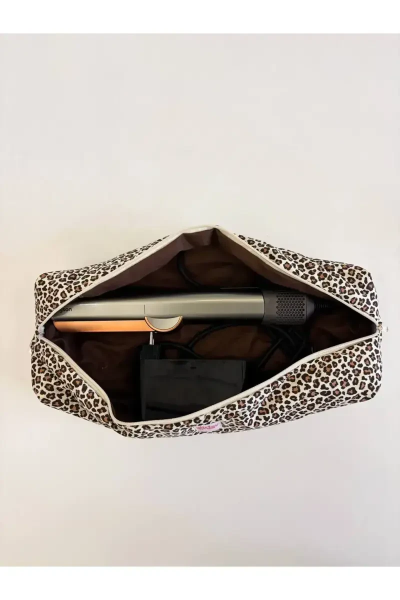 Сумка для щипцов для завивки и выпрямителя волос с леопардовым принтом сочетает в себе элегантность и практичность и позволяет безопасно переносить инструменты для укладки волос во время путешествий и в повседневной жизни. Эта большая дорожная сумка, совместимая с популярными моделями, такими как Airwrap и Airstrait, позволяет отразить ваш стиль благодаря уникальному леопардовому принту. Эта сумка, полюбившаяся девочкам и женщинам, является не только транспортным средством, но и стильным аксессуаром. Благодаря большому внутреннему объему вы можете легко разместить в ней щипцы для завивки, выпрямитель, фен, расческу, щетку и другие средства по уходу за волосами. Изготовлен из прочного материала и обеспечивает длительный срок службы. Его можно легко поместить в чемодан во время путешествий или носить в руке. Эта сумка с леопардовым принтом — функциональный и модный вариант. Это поможет вам поддерживать порядок в уходе за волосами и оставаться ухоженным даже во время путешествий. Теперь переносить и организовывать инструменты для укладки волос стало намного проще и стильнее! Этот продукт был тщательно подготовлен girlsybags и представлен вам.