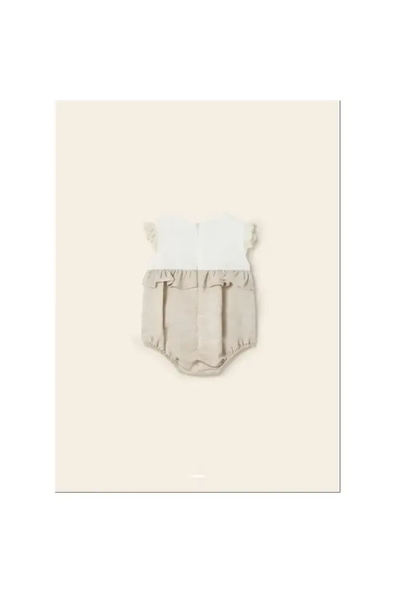 Meet our adorable cream-colored romper, specially designed for your sweet baby girl and a summer essential! Offering both comfort and style on warm days, this breathable romper stands out with its soft texture and practical design. Made from high-quality, 100% cotton fabric that won't harm your baby's delicate skin, this romper ensures comfortable wear all day long. The cream color perfectly complements any outfit, while its cute design will make your baby look stunning. Ideal for both everyday use and special occasions, this romper is a must-have in your wardrobe. Designed with a comfortable cut that won't restrict your baby's freedom of movement. Its practical design, easy to put on and take off, will make mothers' lives easier! Don't miss this amazing romper! We have limited stock, order now and dress your baby in the cutest way this summer!