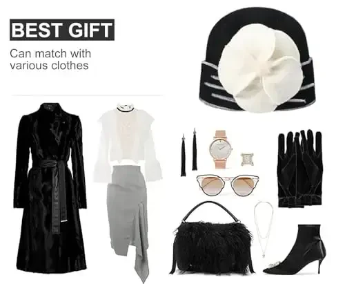 Sumolux Beanie Hats for Women Wool Skull Cap Beret Floral Cuffed French Vintage Dress Cloche Classic Winter 1920s