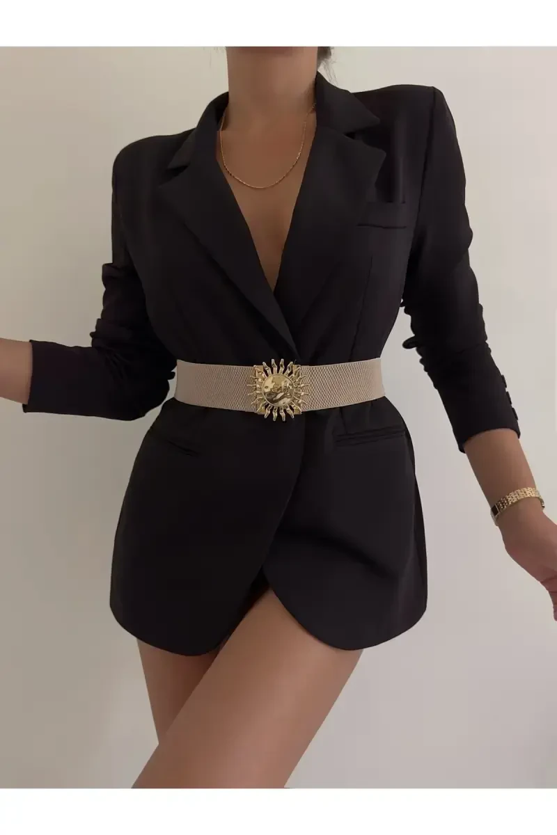Sun Buckle Interlocking Elastic Women's Belt, Jacket Belt, Shirt Belt, Dress Belt-BeigeBelts, which are indispensable accessories of the fashion world, are important details that adapt to every style and add a different touch to your clothes. Here is the Sun Buckle Interlocking Elastic Women's Belt, which combines elegance and functionality! This beige belt is a candidate to be the most favorite piece of your wardrobe. Whether you complete your daily combinations or crown your elegance on your special days; this belt is always with you.This belt is not just an accessory, but a great way to reflect your style and add a new dimension to your clothes. It perfectly matches your dresses, jackets, shirts or trousers, highlights your silhouette and completes your look. Thanks to its snap-on buckle, it can be easily put on and taken off, and its elastic structure offers comfortable use all day long. Beige color gives you unlimited freedom in combining because it easily adapts to every color and pattern.The elegant and modern design of the sun buckle adds a different touch to the belt. This detail turns the belt from being just a functional piece into a stylish accessory. The elastic structure of the belt allows it to adapt to different body types, while at the same time it does not restrict your freedom of movement. It is an ideal choice for those who prioritize comfort in daily use.This belt not only complements your clothes, but also helps you express your style. Whether you embrace a bohemian style or are in search of classic elegance, the Sun Buckle Interlocking Elastic Women's Belt will always be the right choice. You can combine it with your blazer jacket to get a stylish look in the office, or use it with your favorite shirt for a comfortable style on the weekend. By using it with your dresses, you can create a more feminine and elegant look.The Sun Buckle Interlocking Elastic Women's Belt is made of durable materials and offers long-lasting use. Thanks to its quality workmanship, it will continue to be an indispensable part of your wardrobe for many years. The beige color of the belt offers a timeless elegance, while the sun buckle adds a modern touch. This belt is an excellent option for both daily use and special occasions. This versatile accessory, which should definitely be in your wardrobe, is the easiest way to complete and express your style. It will add a different touch to each of your combinations, highlight your elegance and give you confidence.