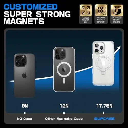 The SUPCASE Unicorn Beetle Mag case offers the ultimate protection and functionality for your iPhone 16 Pro Max. The camera control button makes taking photos and videos easier, while military-grade protection ensures your device is safe. Thanks to MagSafe compatibility, you can seamlessly use your existing accessories and optimize your charging experience. Being made from environmentally friendly materials makes it a good choice for both you and the environment. This case allows you to protect your phone while reflecting your style.