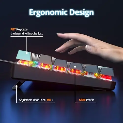 The Surmen Full Size Creamy Keyboard with Number Pad, a 104 Keys RGB Wired Mechanical Gaming Keyboard, is designed to take your desktop gaming experience to the next level. This keyboard is an ideal choice for both gaming enthusiasts and those who spend long hours typing. Equipped with PBT keycaps and linear red switches, this keyboard offers durability, precision, and comfort in one package.The keyboard provides assurance on repairs, parts replacement, labor, and shipping at no additional cost. Breakdowns are covered even after the manufacturer's warranty expires and provide protection against power surges from day one. Expert support is available 24/7 for setup, connectivity issues, and troubleshooting. You can easily create a claim online or by phone, and most claims are approved within minutes.This keyboard provides comprehensive protection for eligible products purchased from Amazon. It offers exceptional protection against malfunctions, defects, and drops or spills for eligible portable items. You are protected for both past and future purchases. You can create a claim in minutes at Asurion.com/amazon and receive a repair, replacement, or reimbursement up to the purchase price. There are no hidden fees, and you can make up to $5,000 in total claims per 12-month period. You can cancel at any time; your plan renews monthly until canceled.It is equipped with Red switches that offer smooth and linear keystrokes, reducing finger fatigue thanks to their low activation force. Red switches are quieter compared to other mechanical switches, making them suitable for shared or noise-sensitive environments. It offers an ergonomic typing experience thanks to its OEM profile design and full-key anti-ghosting feature. It is equipped with various functions and shortcut keys accessible via FN key combinations. The Windows key lock mode prevents you from accidentally pausing the game while playing.Thanks to its stepped keycap design, it reduces hand fatigue during long-term use by keeping your arms in a natural position. It includes two foldable rear feet for adjustable typing angle and four rubber pads for non-slip performance. Illuminate your desktop with 18 different RGB backlight modes. The lighting can be easily turned off when you prefer a calmer environment. Personalize your gaming and typing experience and enjoy superior performance with the Surmen Full Size Creamy Keyboard. The keyboard will be an indispensable part of your gaming station and workspace, not just an input device.